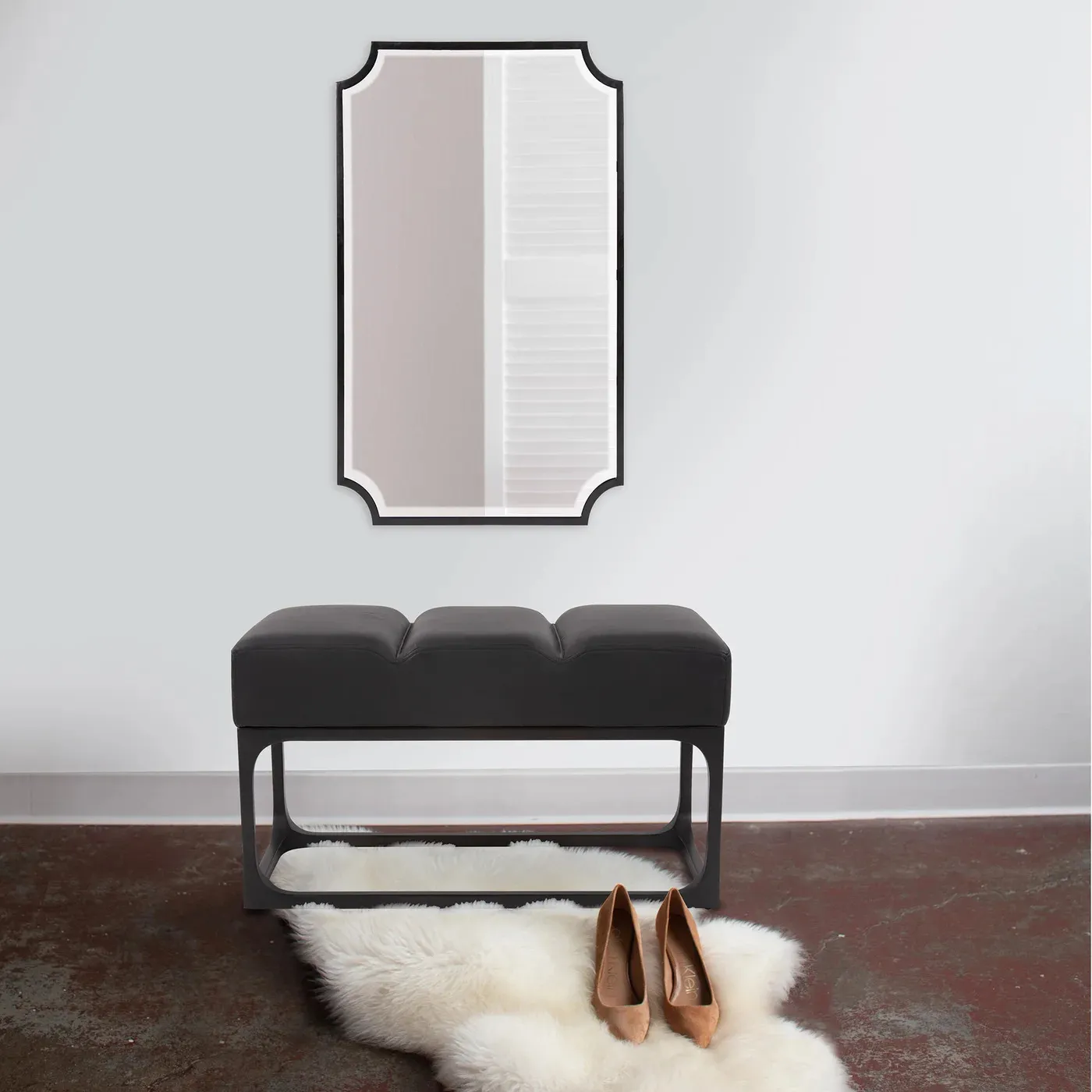 Shields for centuries have inspired many unique designs including furniture, fabrics, accessories and mirrors. Our Hastings Rectangular Mirror is one such shape that still relates to todays home dƒÂ©cor. The brushed black stainless steel frame mirror with bevel recreates a style that is timeless for the ages. Additional finish available.
