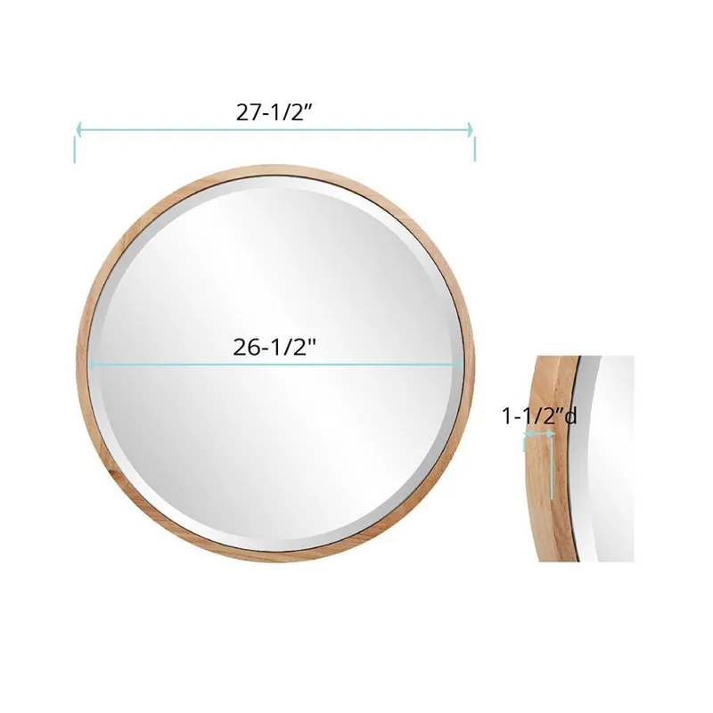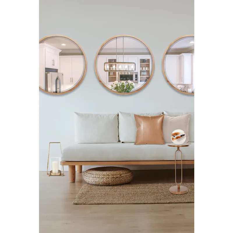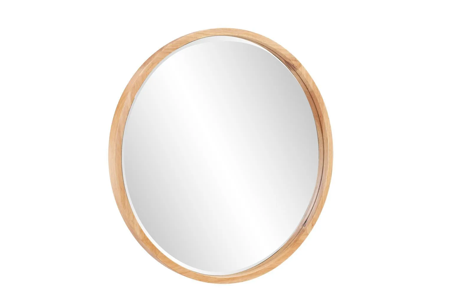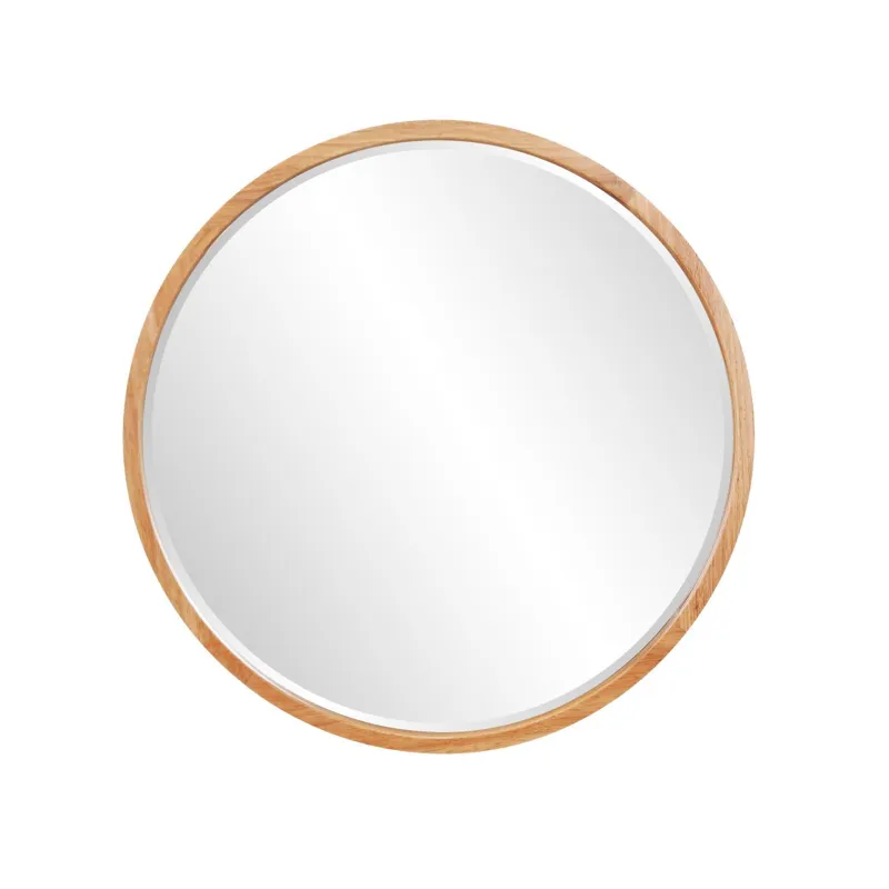 The sleek lines and softly rounded edges give the Johann round beveled mirror a sophisticated European styling. The light oak frame fits perfectly in some of today's hottest lifestyle trends. Whether grouped together or used individually, these mirrors will offer several solutions for creating a unique room space that reflects your personal style