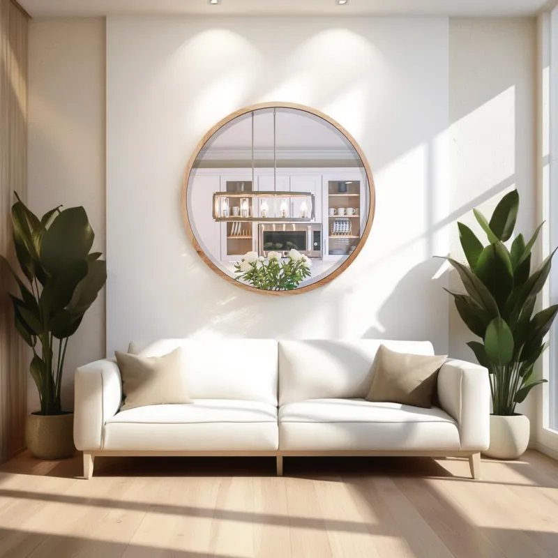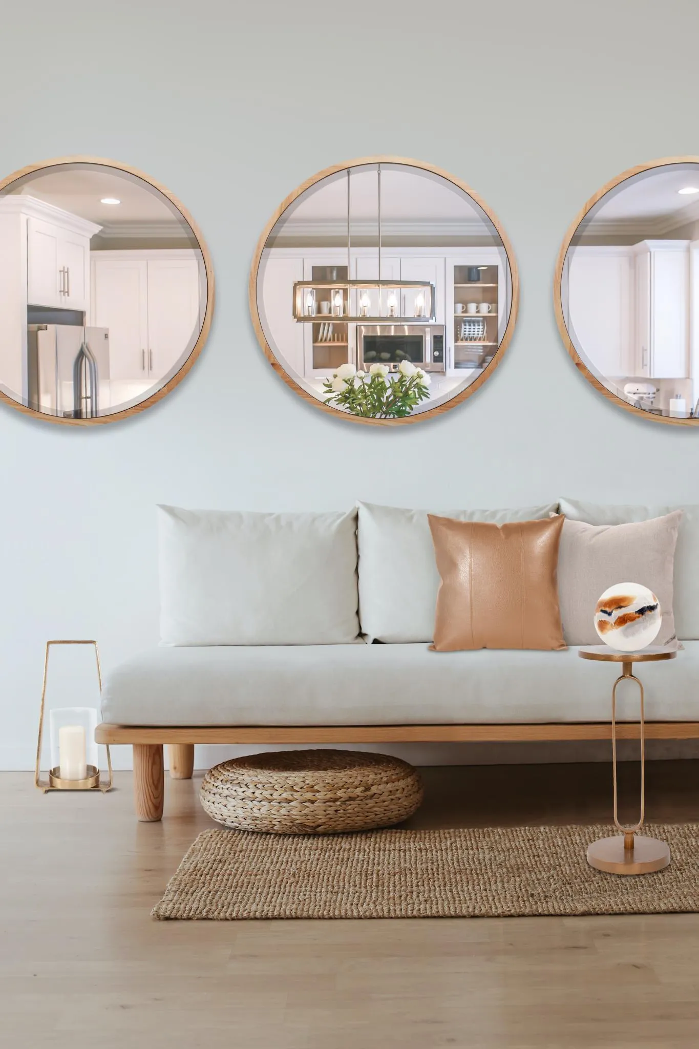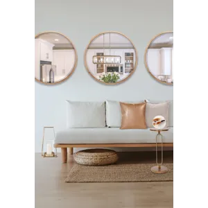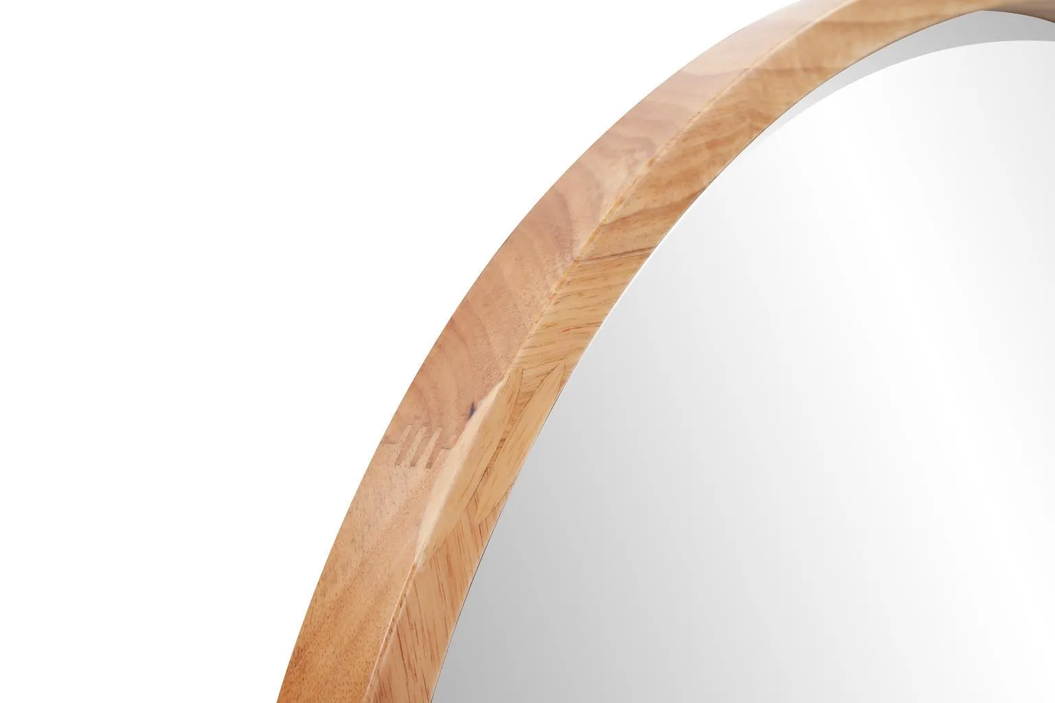 The sleek lines and softly rounded edges give the Johann round beveled mirror a sophisticated European styling. The light oak frame fits perfectly in some of today's hottest lifestyle trends. Whether grouped together or used individually, these mirrors will offer several solutions for creating a unique room space that reflects your personal style