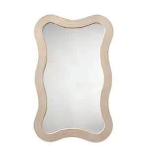 The gently curved lines of this wood mirror are beautifully enhanced by linear textural elements. Artisan-crafted from bamboo, its monochromatic finish adds a touch of drama to any wall display. Place it by the door for a quick fit check on your way out, or in an entryway for a welcoming touch of light.