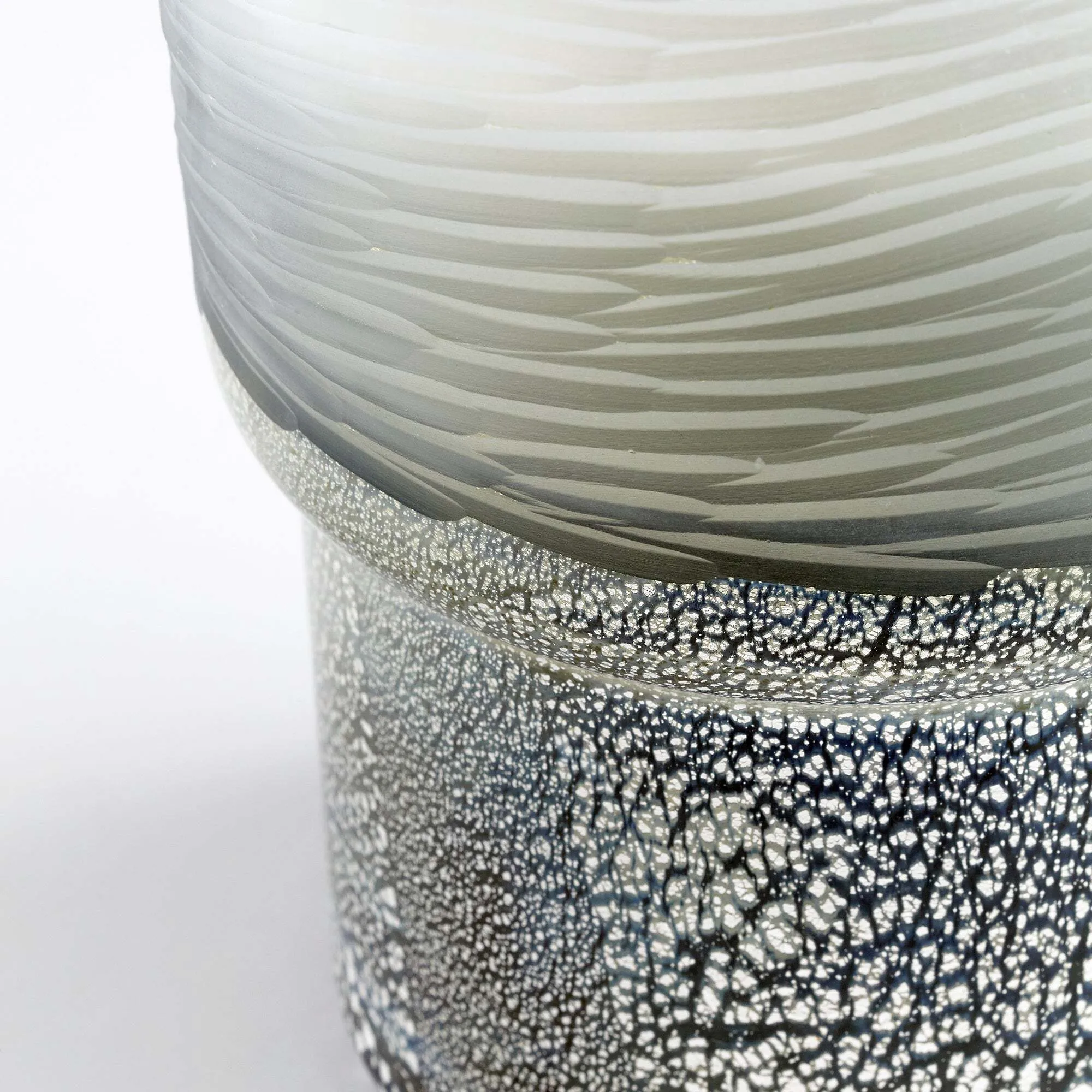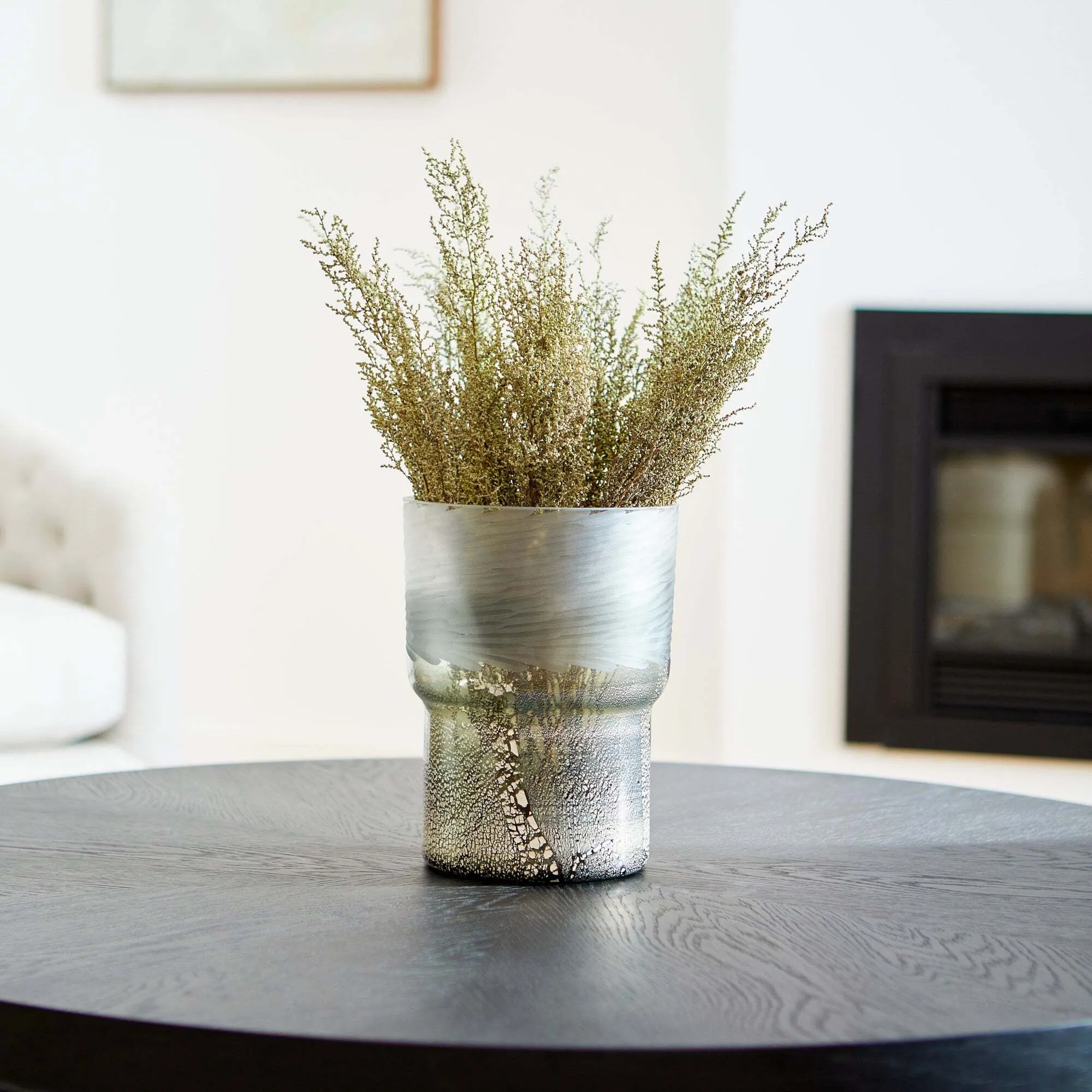 Variance in texture, tone, and size are what make the Canyonland vase standout from the rest. This reverse tulip-silhouette sports a gradient clear to gilded silver surface finish. Transitional versatility offers this vessel a place in any contemporary setting. Adorn your living room, entryway, or commercial lobby display with multiple Canyonland vases (available in three sizes) and top with a floral bouquet for an added natural touch.