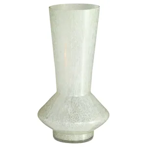 A blue reactive glaze flows into a clear frosted ombre on the Chuva vases, creating a textured, organic finish. The variations in each piece are shaped by the heat, with the glaze reacting differently to create distinct patterns and depth, making each vase a unique work of art. Available in two separate sizes.