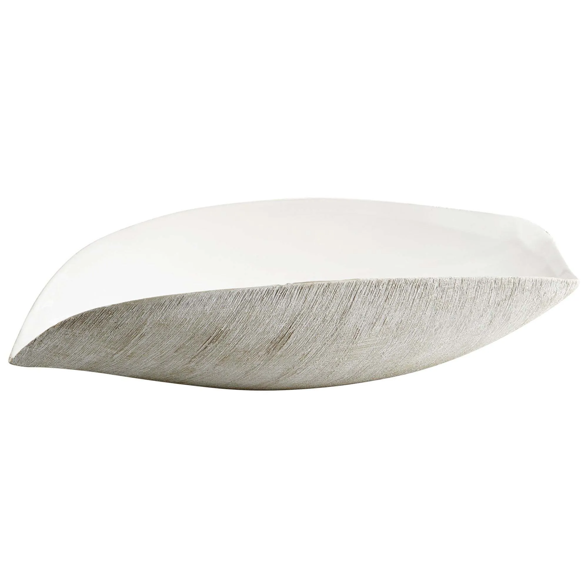 Explore the depths of intrigue with this large natural stone ceramic tray, great on top of any fireplace mantle. The textured exterior gives off a shell-like feel, leaving your belongings to shine like the pearl of a clam.