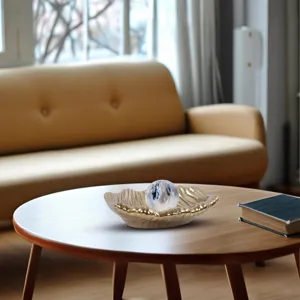 Featuring a captivating mix of swirling blues, whites, and metallic tones. Its polished surface reflects light elegantly, bringing a modern and artistic flair to any room.