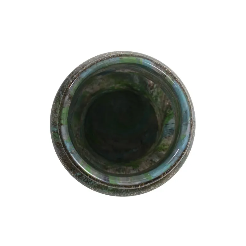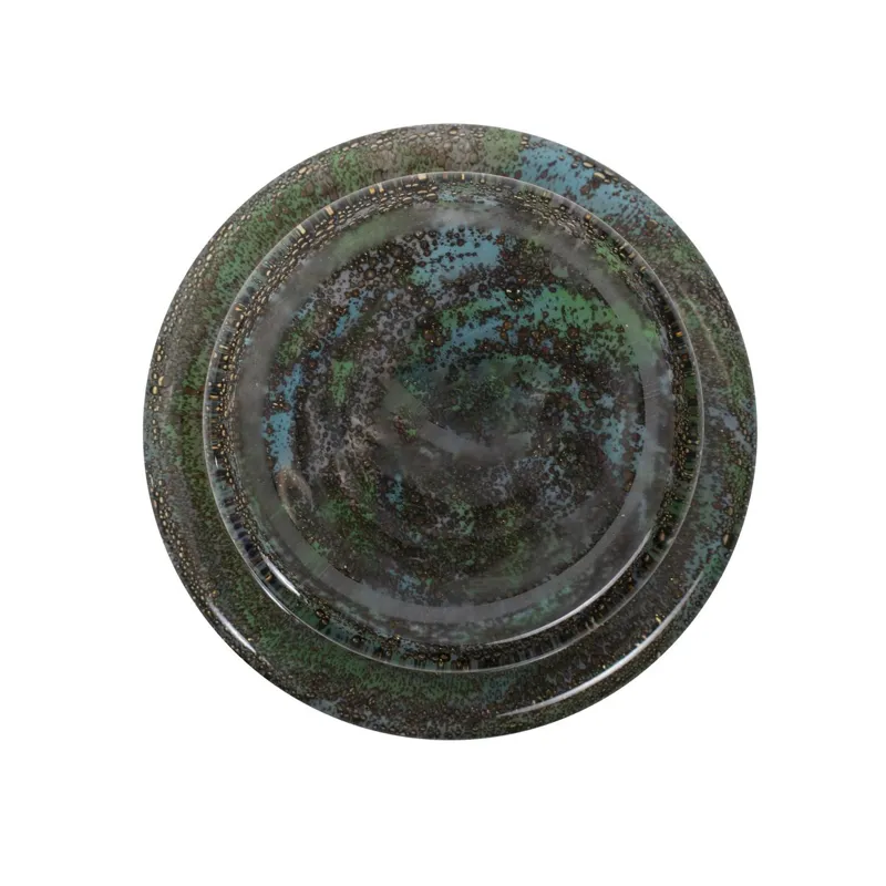 A vibrant addition to your home decor. Crafted to infuse your space with personality, this piece features a kaleidoscope effect created by a mix of vibrant colors. Bright blues and teals peek through rich browns and grays, resulting in a sparkling and dynamic visual display.