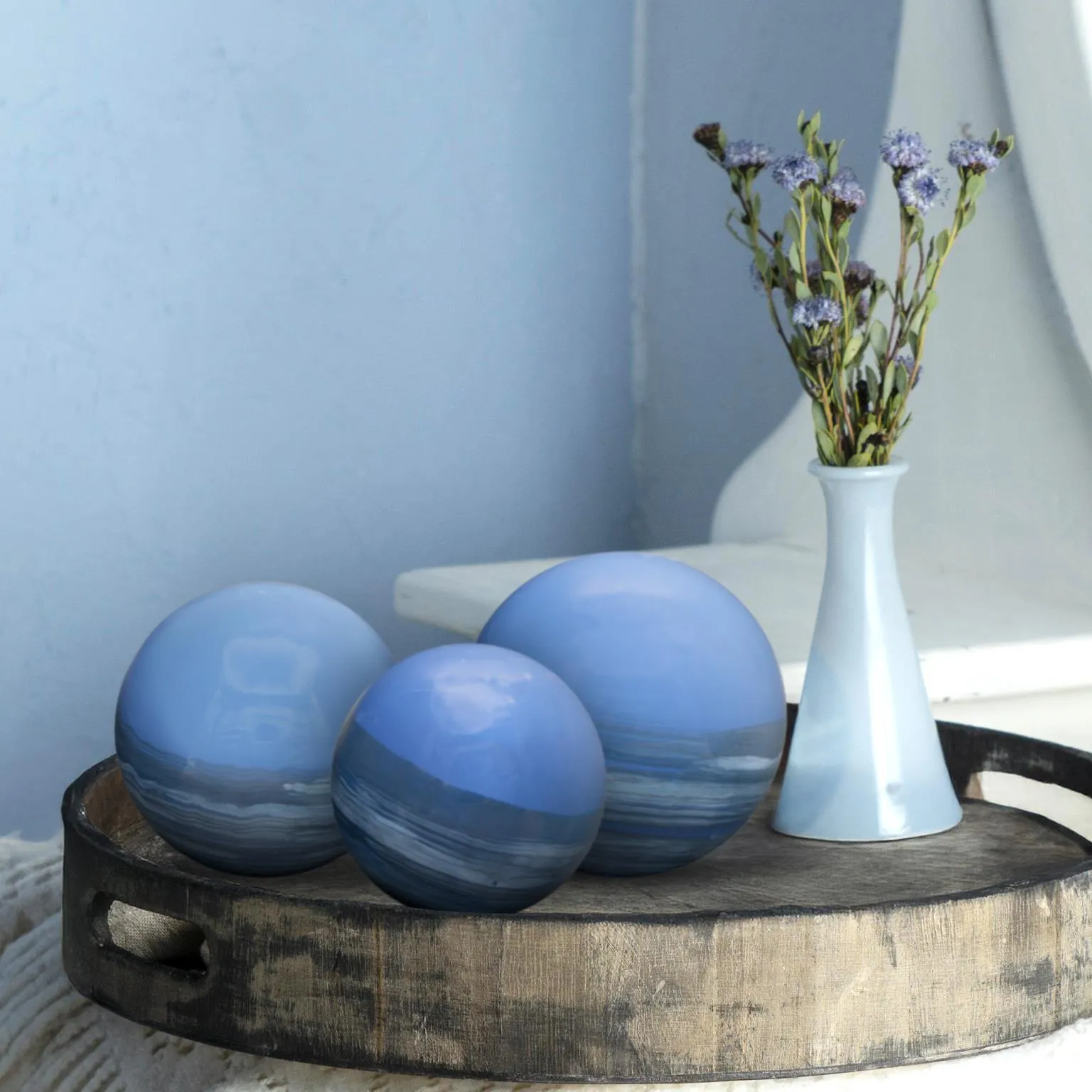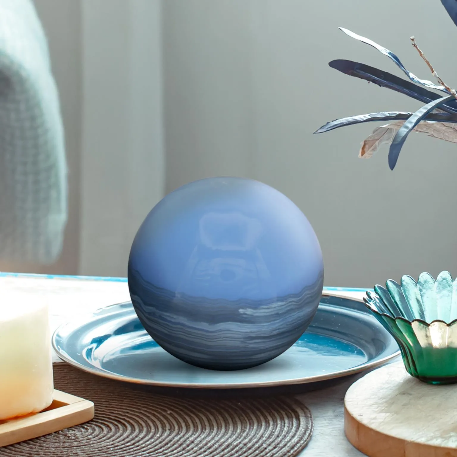 Inspired by the brilliant deep blue of Madagascar sapphires, the Sapphire Orb showcases a rich, mesmerizing hue. Its sleek, metallic surface captures light and adds a bold, luxurious accent to any space.