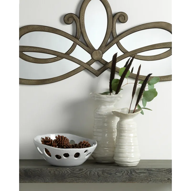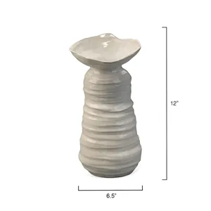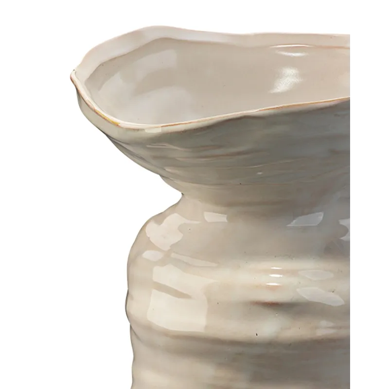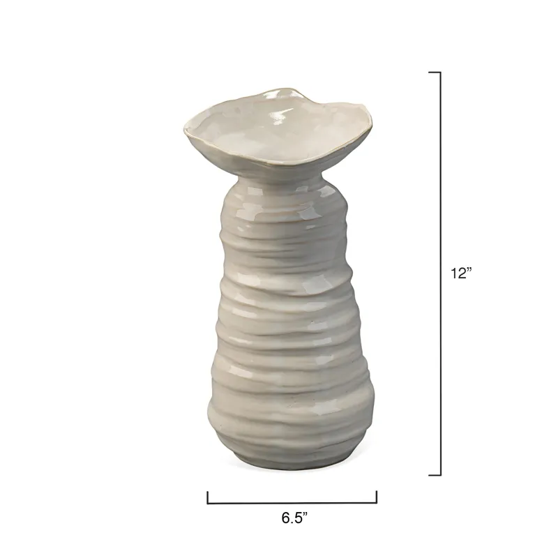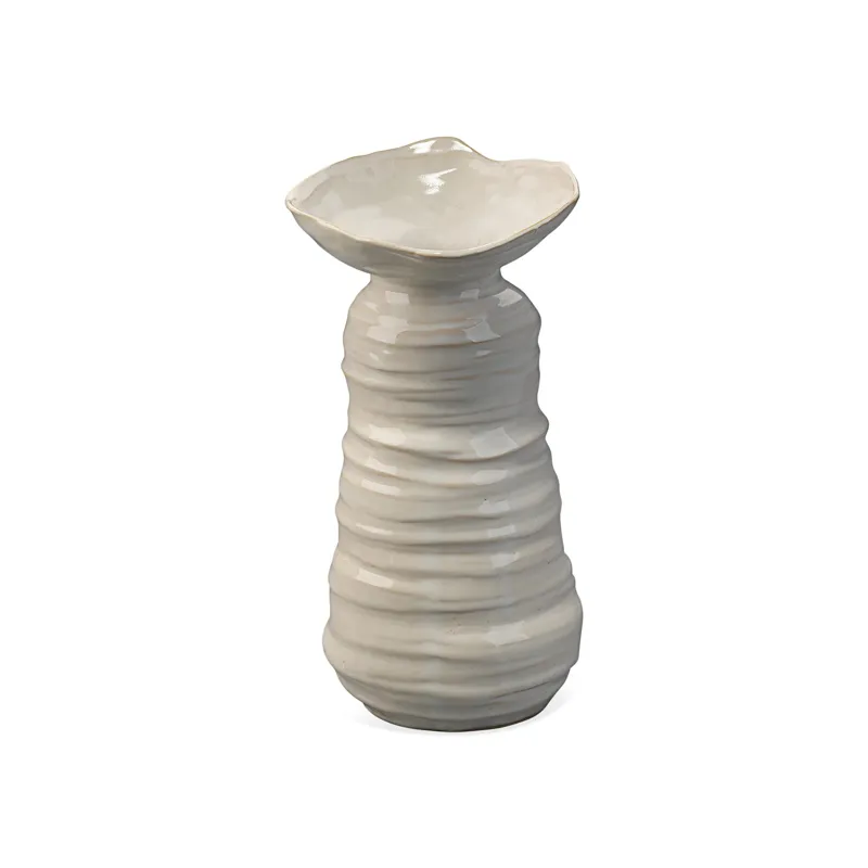 Our Marine Vases embrace an organic shape with a ribbed ceramic body and a wide opening, perfect for any flower arrangement. Available in two sizes and two finishes, including a portabello brown reactive glaze and a sophisticated white ceramic, both topped with a pearlized finish.