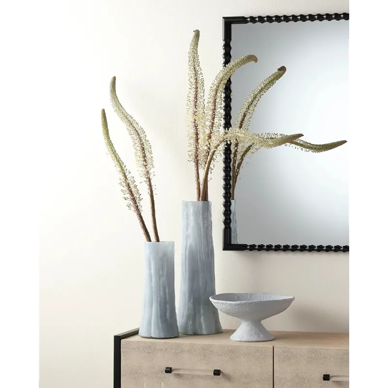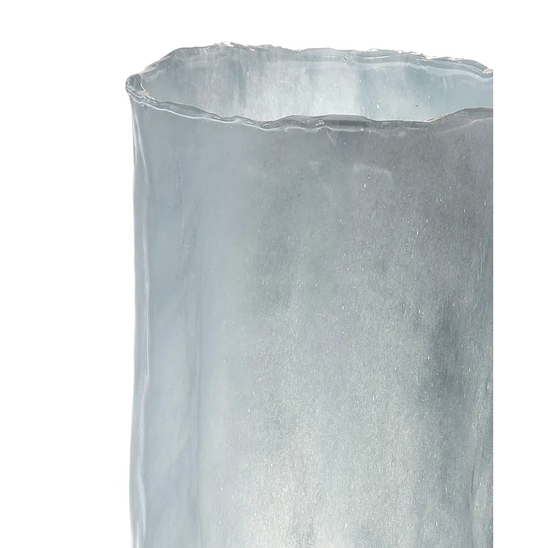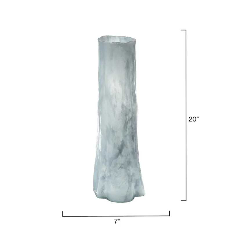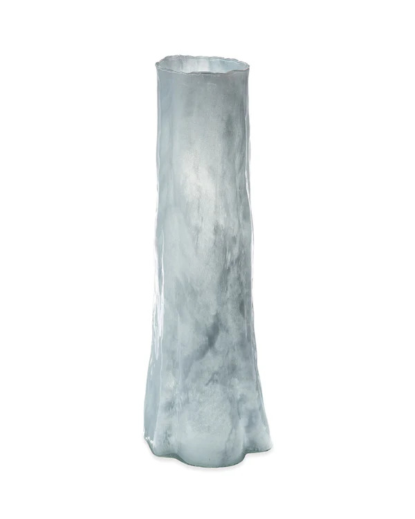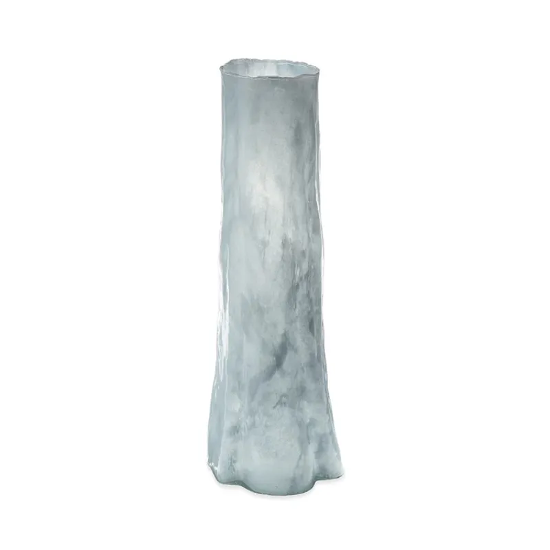 Expertly handcrafted from light blue glass, the shape and nuanced details of this tall vase beautifully evoke the majesty of a single, strong sequoia tree. Its tall and slim design makes it ideal for showcasing long-stemmed florals.