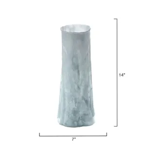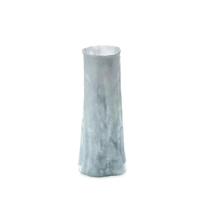 Expertly handcrafted from light blue glass, the shape and nuanced details of this tall vase beautifully evoke the majesty of a single, strong sequoia tree. Its tall and slim design makes it ideal for showcasing long-stemmed florals.