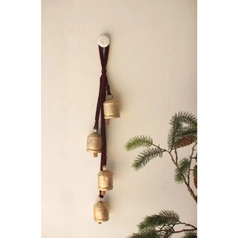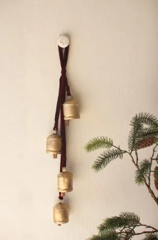 Jingle all the way! Mark Santa's place or fill the house with jingles when guests arrive. This jingle bell cluster on a maroon ribbon makes great mantle or door decor.