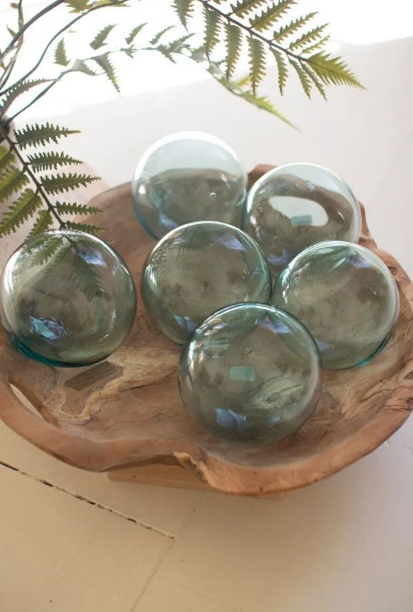 These are recycled Columbian glass balls. Use these clear glass orbs to complement your table decor, fill a bowl, or anchor a vase, to name a few uses. You'll want these gorgeous glasses in every color.