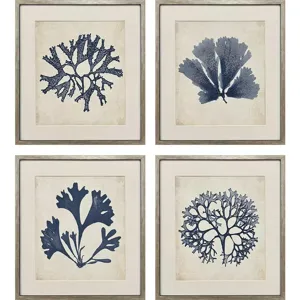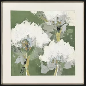 Serene vistas on fine art paper are matted in white and framed in a black painted wood with distressed silver leaf inner slope.