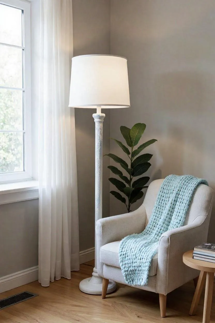 Nude/Atlantic Grey Textured Pole Floor Lamp