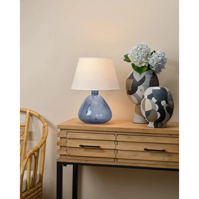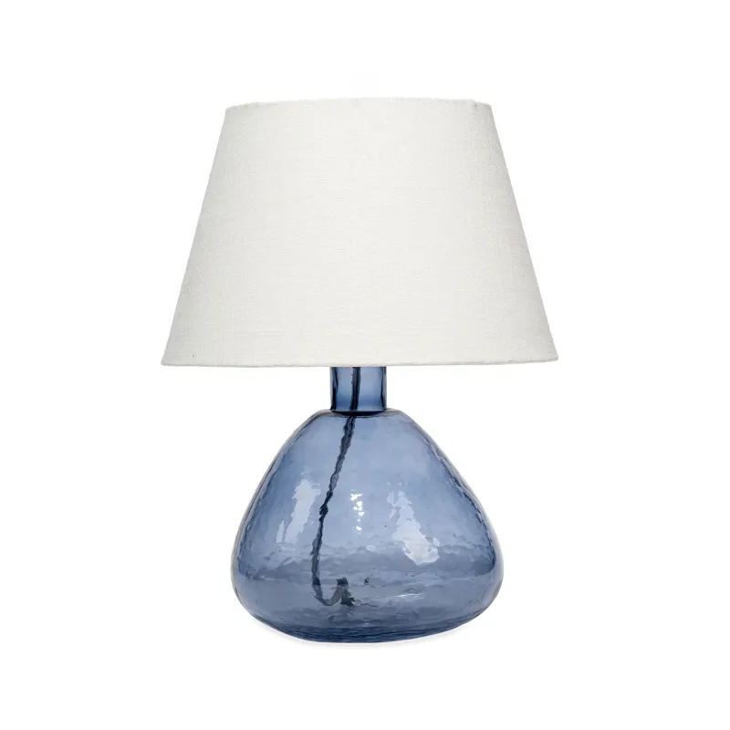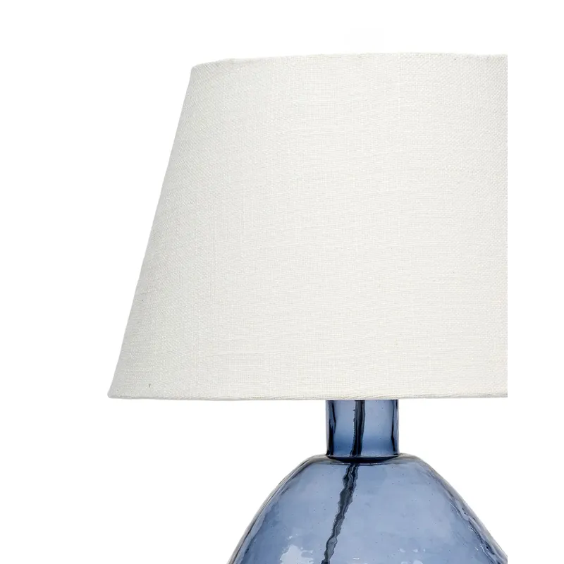Inspired by the highly polished bits of sea glass that wash up on beaches across the globe, this serenely beautiful table lamp is topped with a tapered linen shade and a coordinating metal finial. Display a pair on either end of a large console, or use individually to instantly brighten and refresh a guest room.