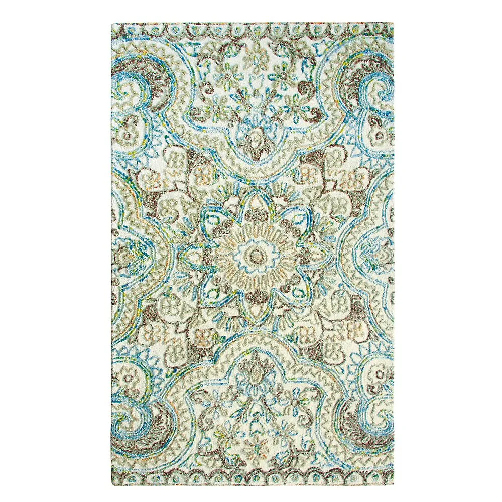 Our Agra rug is hand tufted, and features a multi-colored looped design set against an ivory background. This artisanal hand-crafted area rug is a modern interpretation of classic tapestry design, and pairs perfectly with both solids and patterns. Made in India.