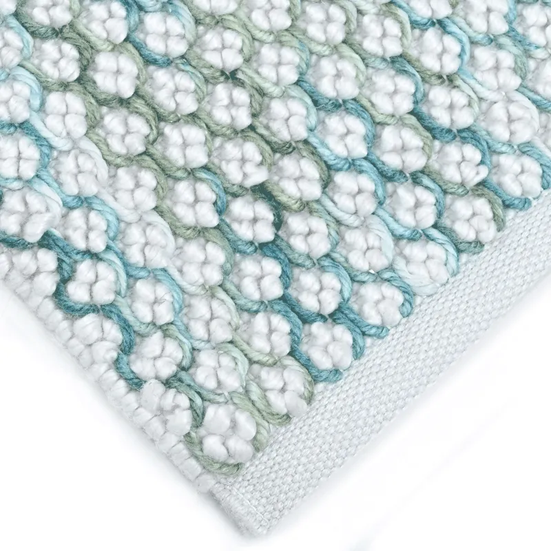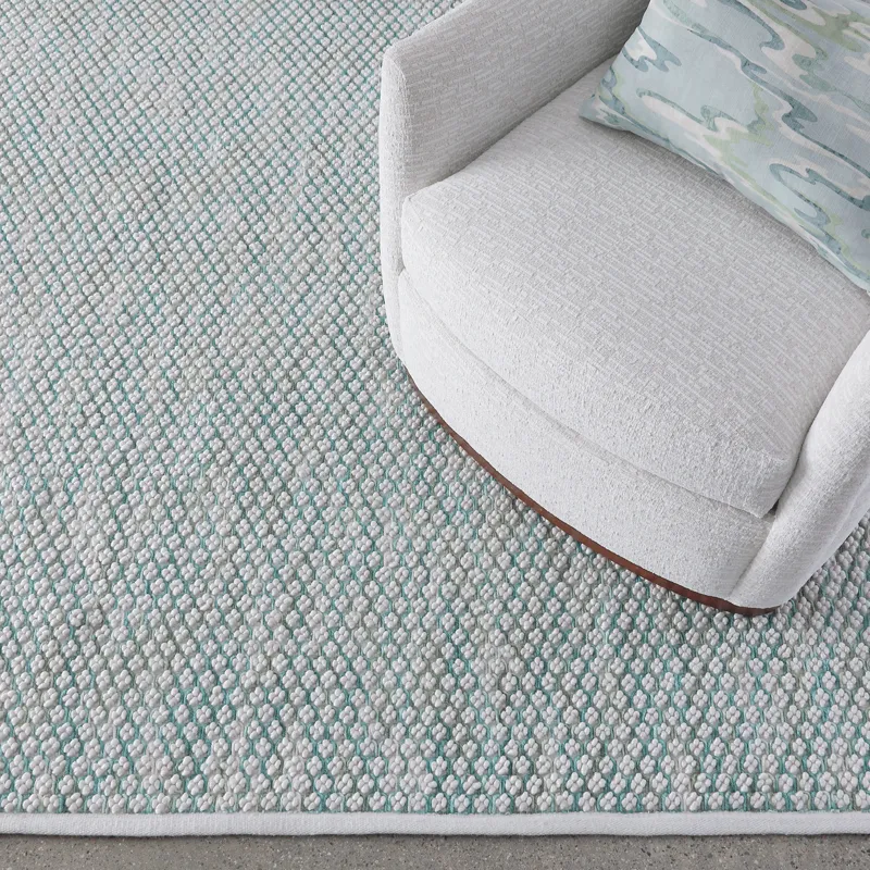 Bubbles doesn't just adorn your floor; it transports your senses to distant shores with every step. Inspired by the turquoise waters and crashing surf of the Caribbean, this rug brings paradise home. Meticulously hand-woven from post-consumer recycled polyester yarns, Bubbles creates pure joy underfoot.100% post-consumer recycled polyester certified to the Global Recycled Standard (Bureau Veritas TE-00076280). Hand-woven, 1/2" loop pile. Made in India. GoodWeave certified.
