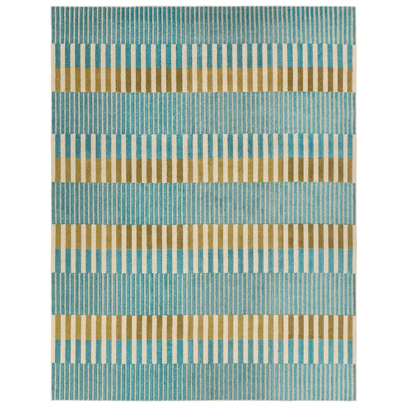 The Alina collection captivates with eclectic color combinations and striking geometric patterns. The Nori design’s playful blue stripes feature a subtle high-low effect that’s both vibrant and textural. Adding personality and style—both indoor and outdoor—has never been easier.