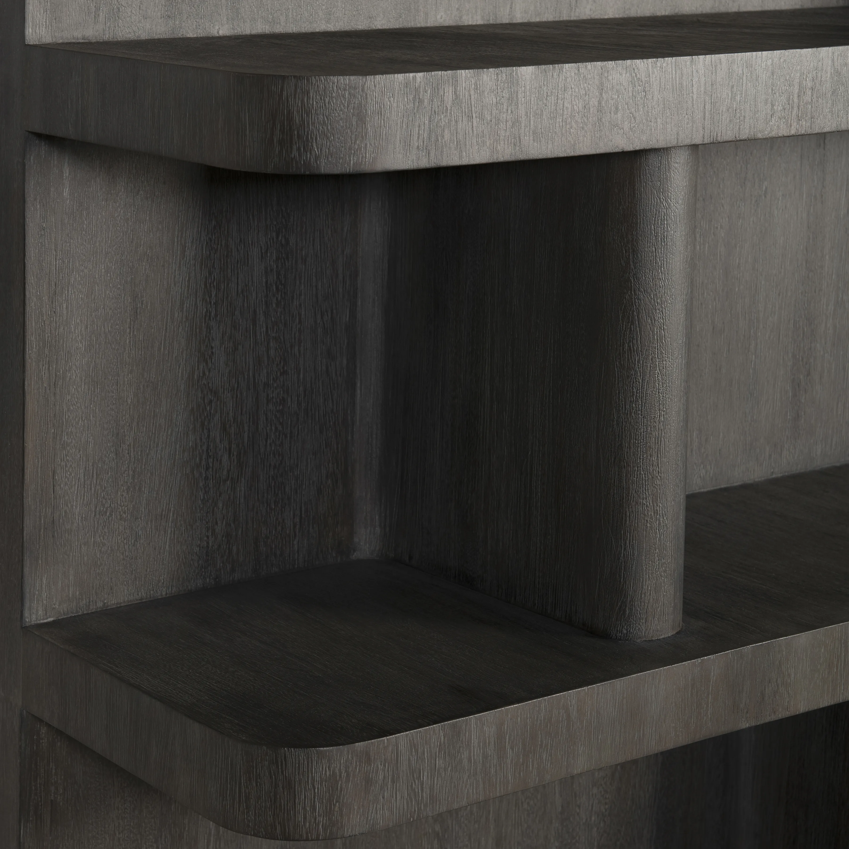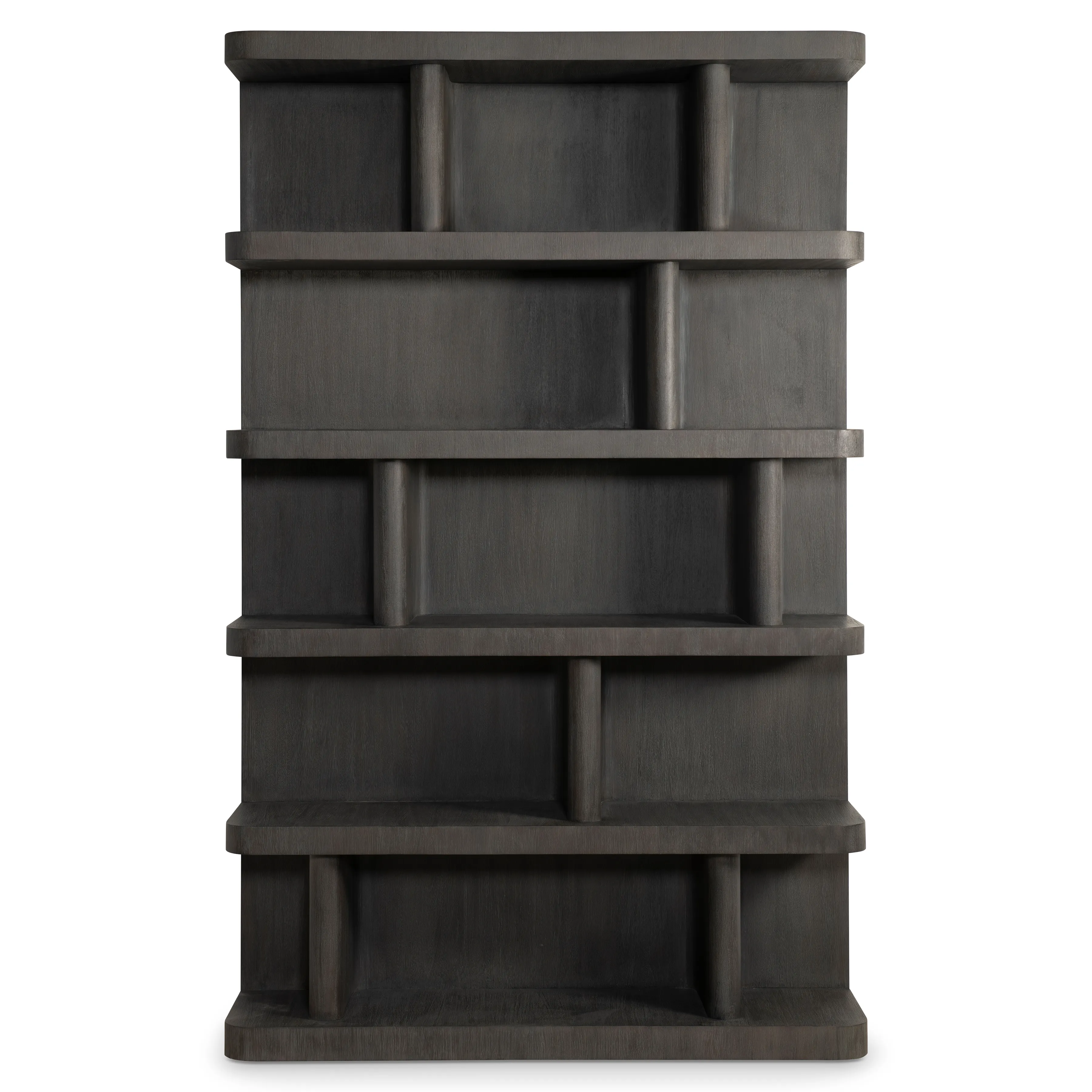 The Boyd etagere has five shelves with uniquely sized panels that create chic modern storage. Inspired by midcentury modern design, but updated for modern living, the etagere is crafted from mahogany in our dark, Bracken finish.