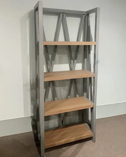 Perfect on it its own or bunched together for impact, the Americana Modern Étagère Bookcase is a design essential. Featured in a dove grey finish with contrasting wood-grain shelves, it offers generous space for display and storage. From books and accessories to favorite photos, you'll love how they look in this stylish bookcase