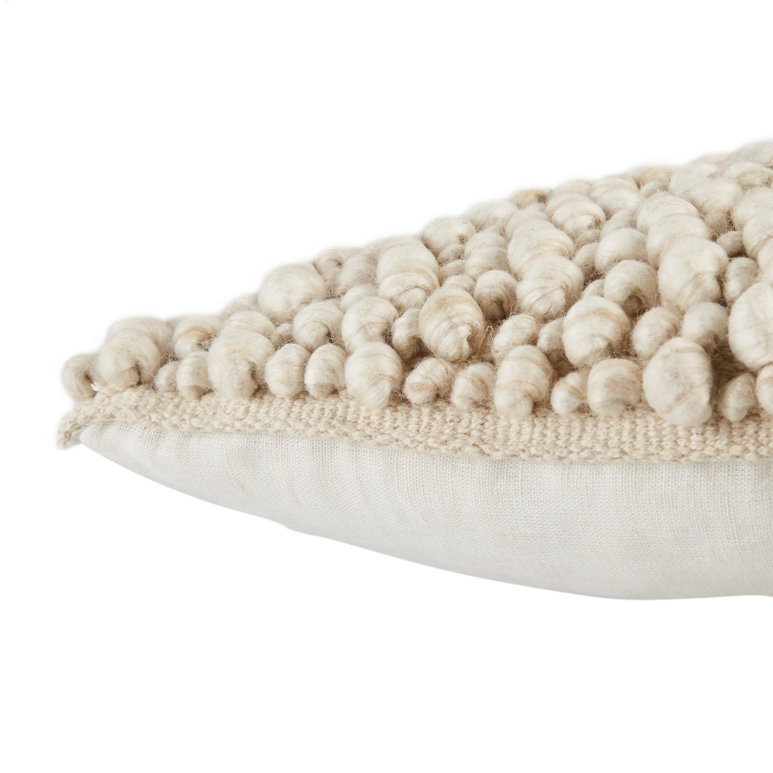The Angora pillow collection offers plush, soft texture and a modern vibe to any space. The Kaz pillow features a cozy, woolen boucle design in ivory and light beige. This globally inspired accent pillow lends inviting, comfy style to sofas and beds.