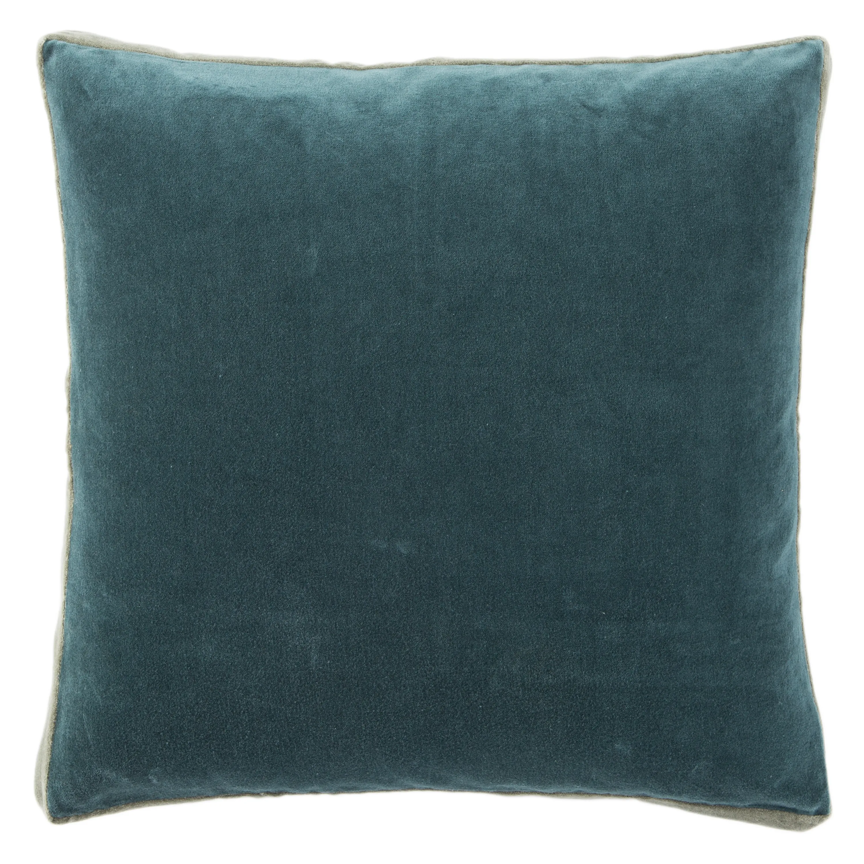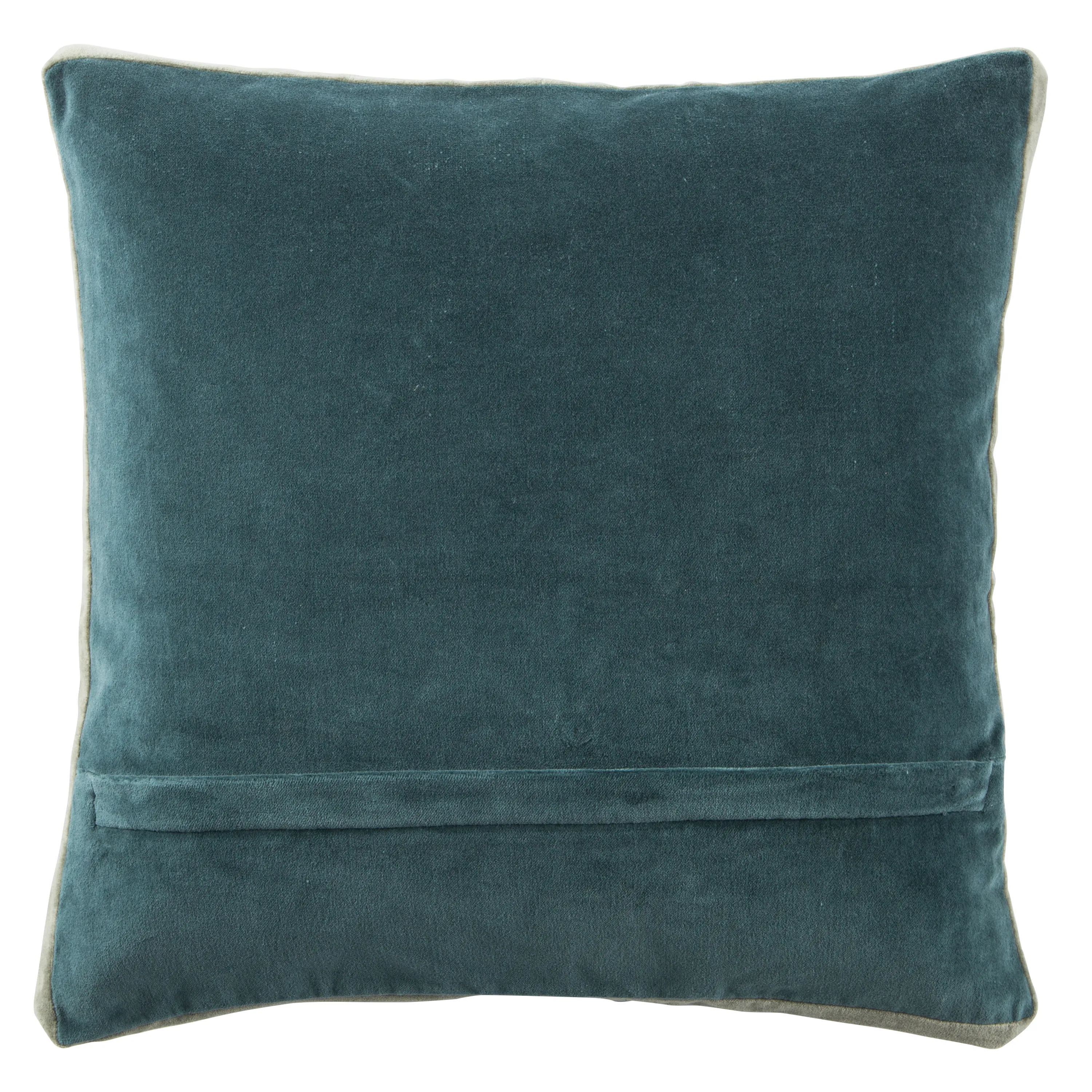The Emerson pillow collection features an assortment of clean-lined, coordinating accents crafted of luxe cotton velvet. The Bryn pillow lends simple sophistication to modern spaces with a solid teal color, embellished with a gray-green banded edge.