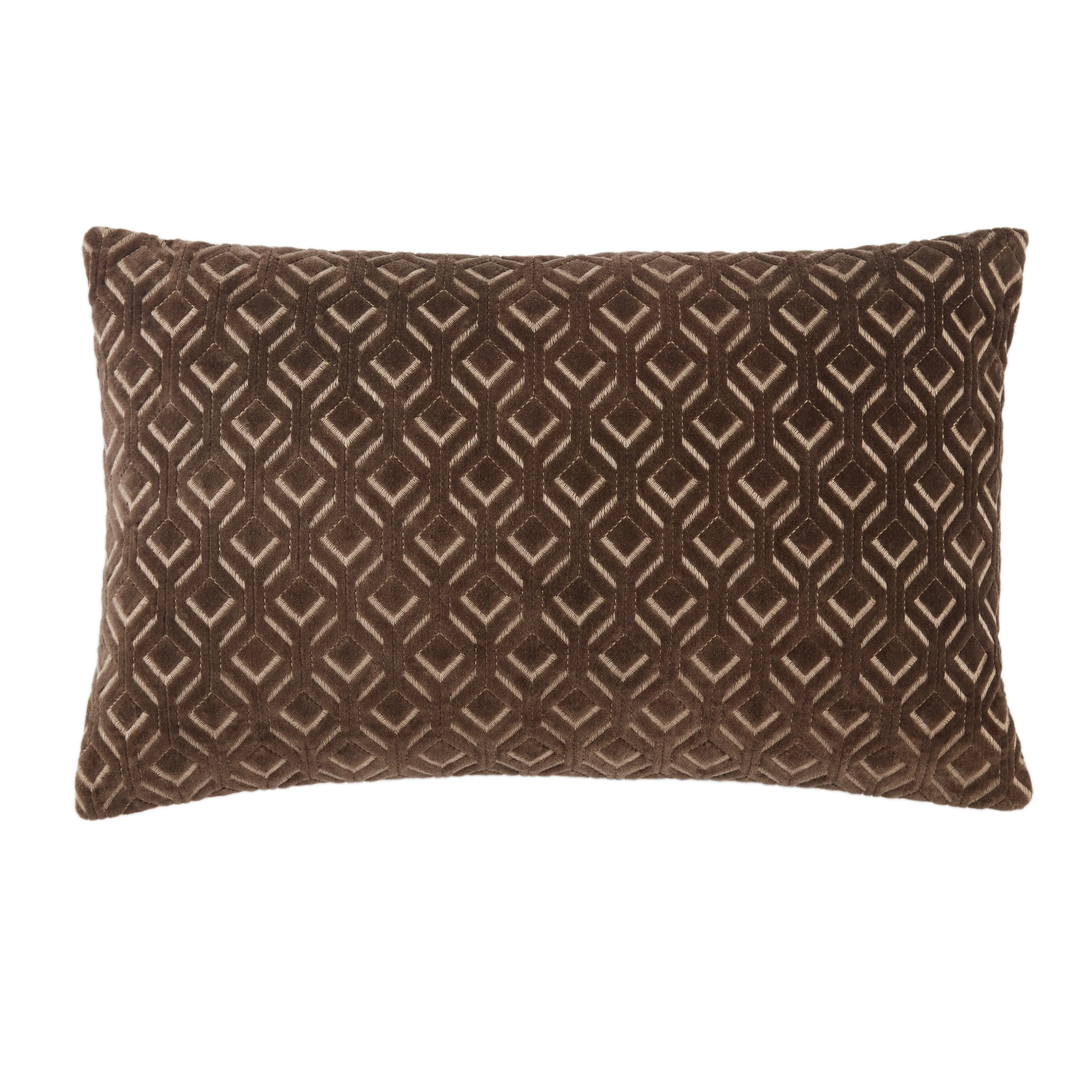 Soft and structured, the Nouveau collection blends Art Deco details and texture-building embroidery that is easy to mix and match with any style. The dark taupe Colinet pillow boasts an embroidered diamond lattice design on the cotton velvet front.