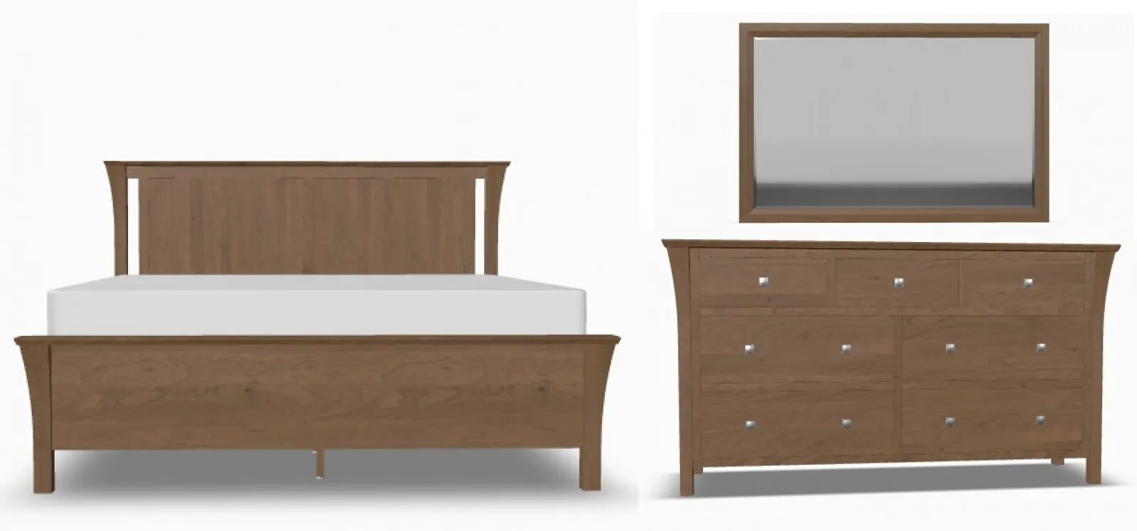 King Panel Bed w/Low Footboard, Marco Mirror 5 (56"W x 1"D x 36"H), & Marco Dresser 2 (66"W x 20"D x 36"H).