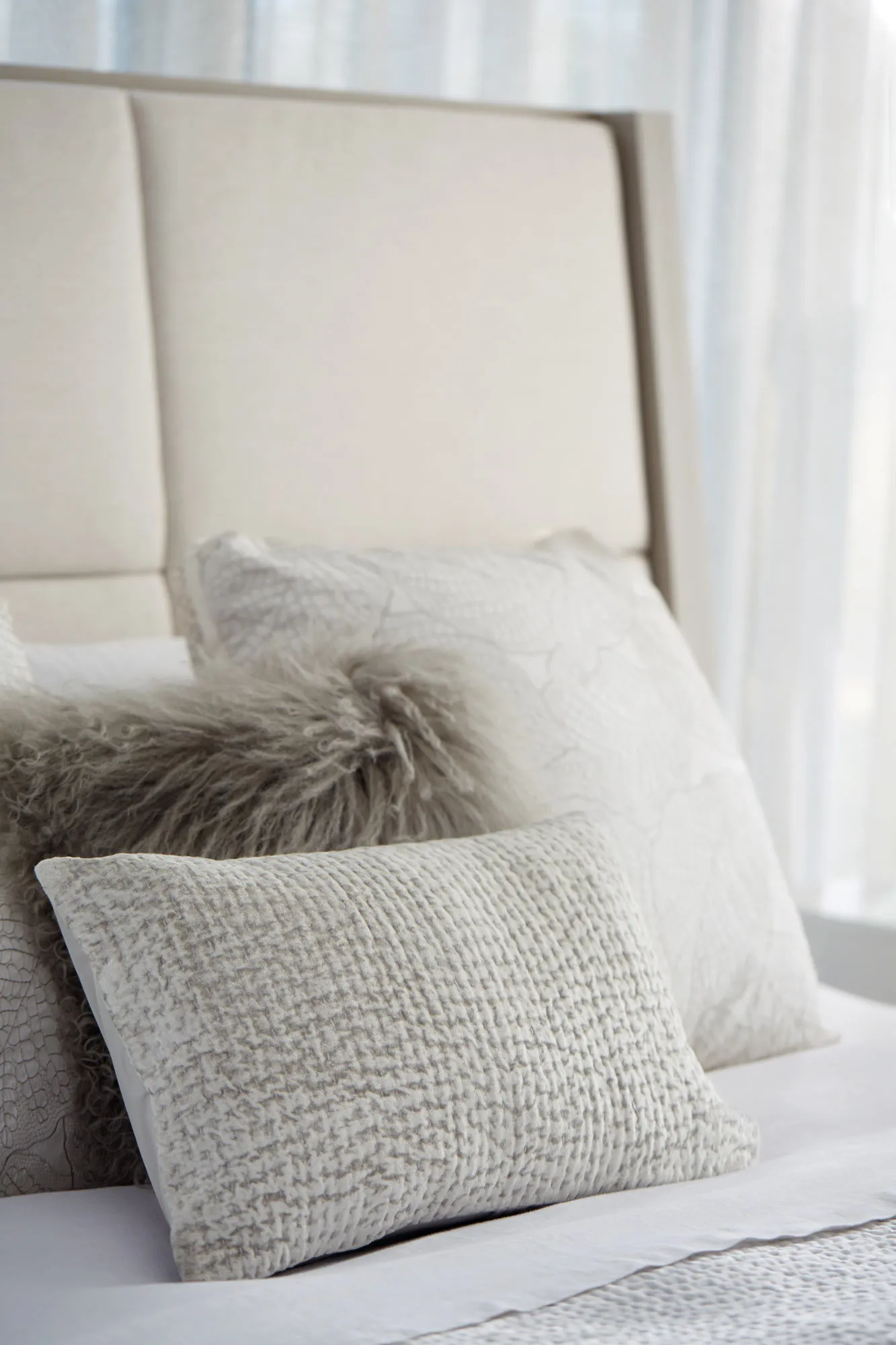 Features Panel Bed, Upholstered