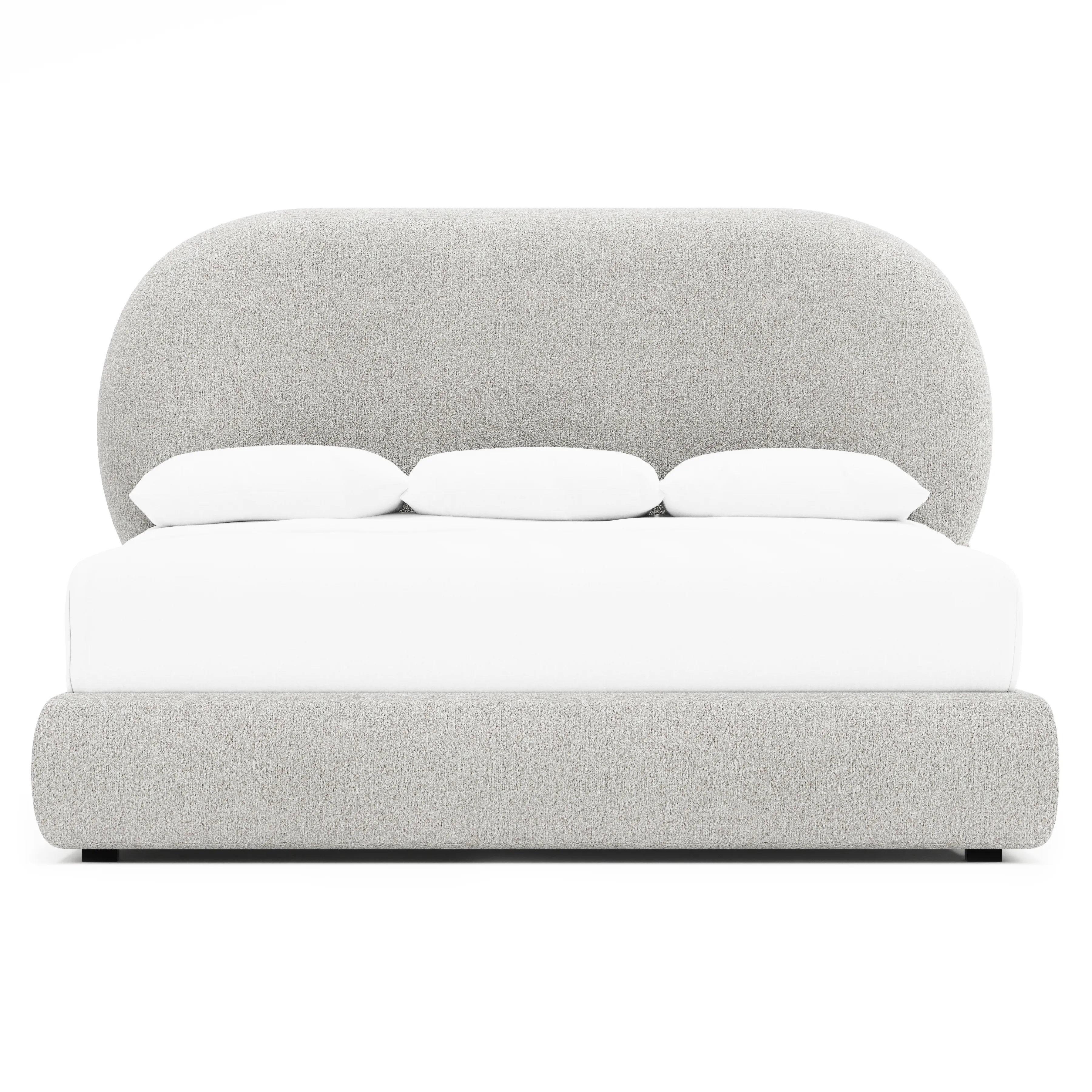 The Monolith panel bed makes a bold statement with daring shapes and a fully upholstered design. A unique curved oval headboard is nested into the back and side panels, creating a one-of-a-kind style. Exposed wood feet are finished in Puma.
