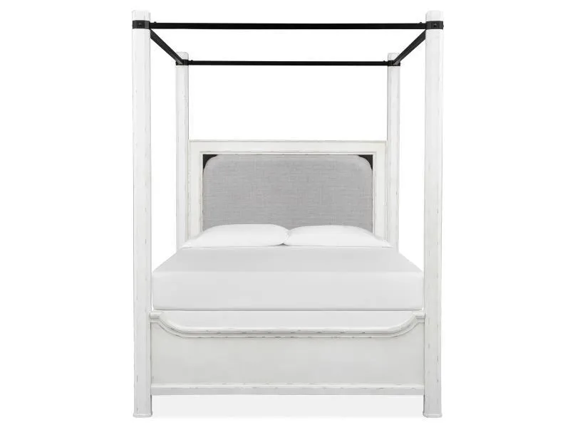 B4353-56H: Wood Queen Poster Bed Uph.HB+FB+Short Canopies+Slats KD