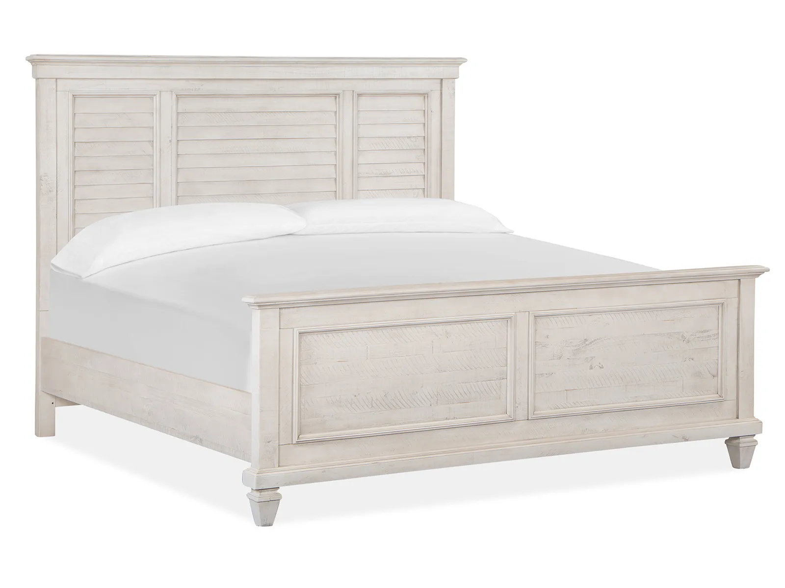 Inspired by the architecture and landscape of California Wine Country and the Newport bedroom collection exudes the ambience of laid-back luxury. Crafted of high-low Pine and Pine Solids and the soft Alabaster finish and Brushed Pewter hardware mix effortlessly with graceful turned legs and designer details to create a look that is bold yet inviting. Adding a casual and coastal resort flair and Shutter wood doors are used on select pieces. Crisp and updated and Newport promises long-lasting design and sturdy construction for any relaxed setting.