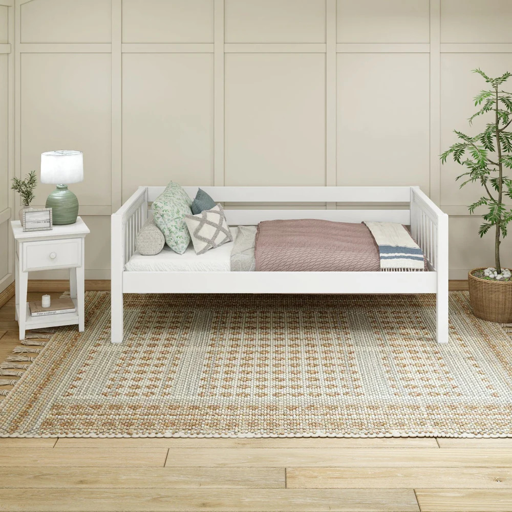 - Superior Safety Standards: With a weight limit ranging from 800 pounds for twin and full bed sizes to 2,000 pounds for twin XL and queen bed sizes (as supported by internal testing), industry-leading 16” guardrails, and low-VOC finishes for cleaner indoor air, rest soundly knowing this solid wood daybed outperforms in safety and security.