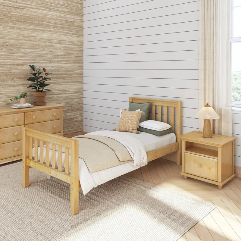 Super functional design works perfectly for a child not quite ready for a raised bed, or for furnishing a guest room where different ages and sizes will sleep.