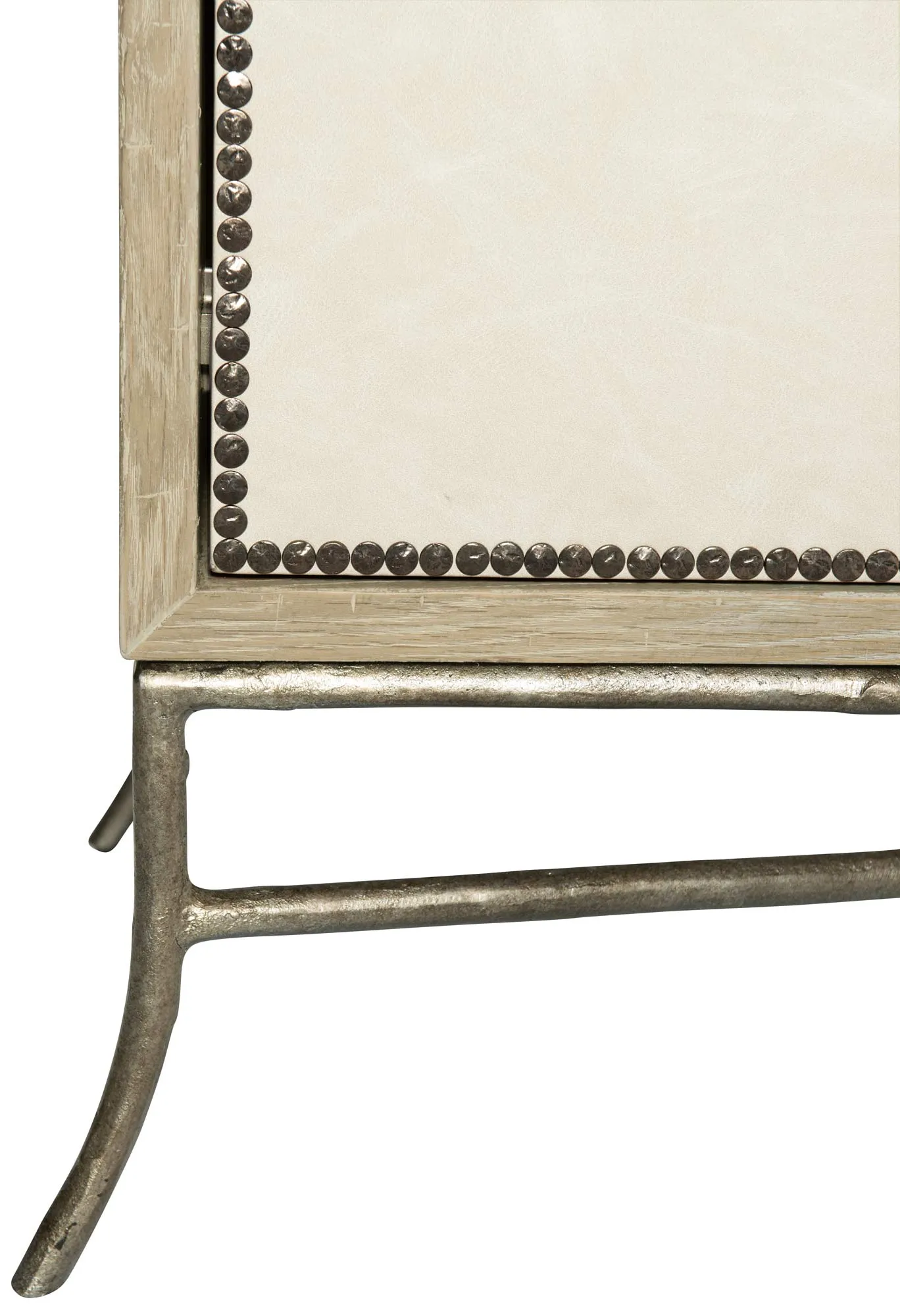 Textured cast iron base and stretchers in Burnished Silver finish