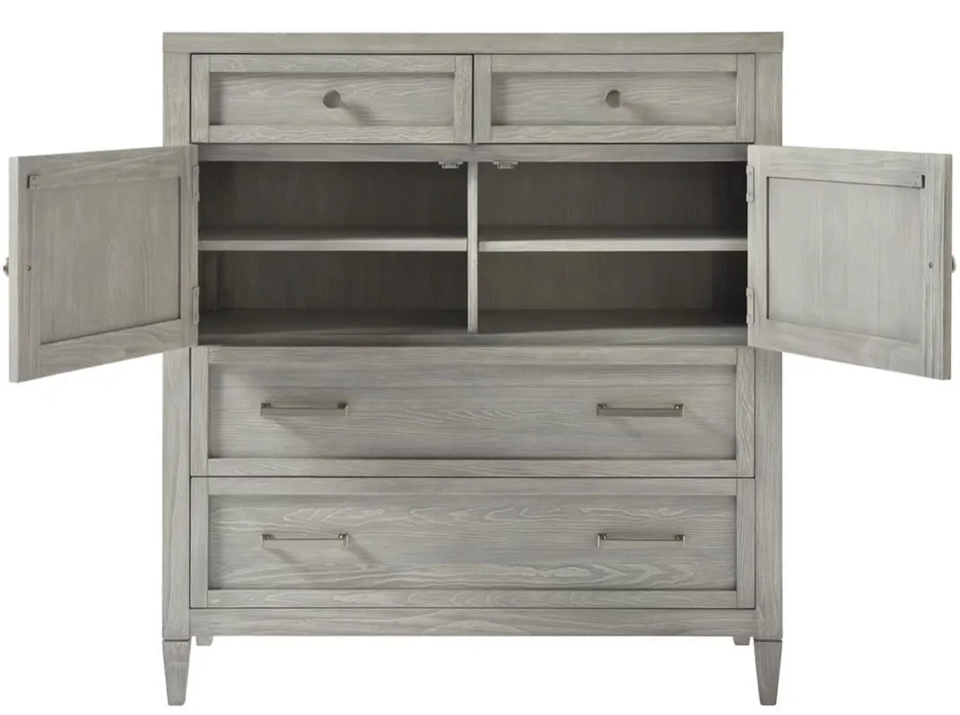The Escape Small Chest captures the essence of clean and simple style with an abundance of storage drawers, a sleek mixture of knob and bar hardware, and a pleasantly smooth Boardwalk finish.