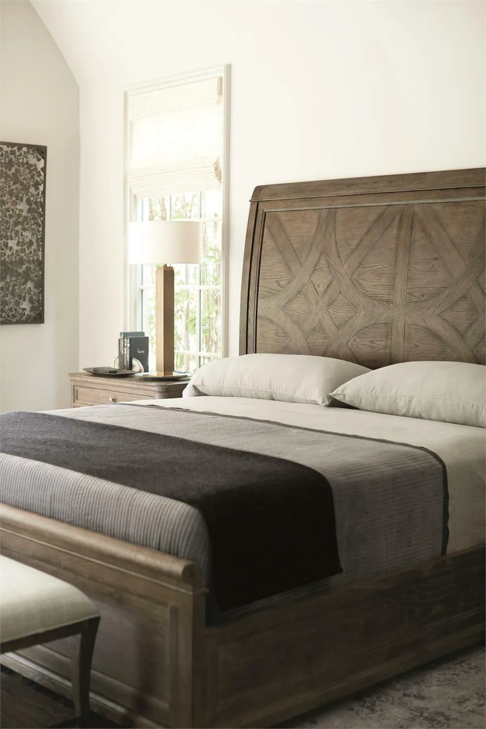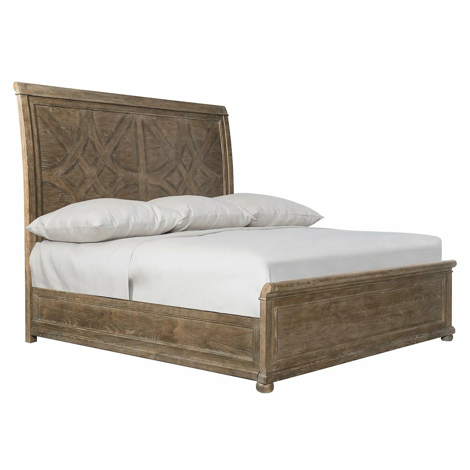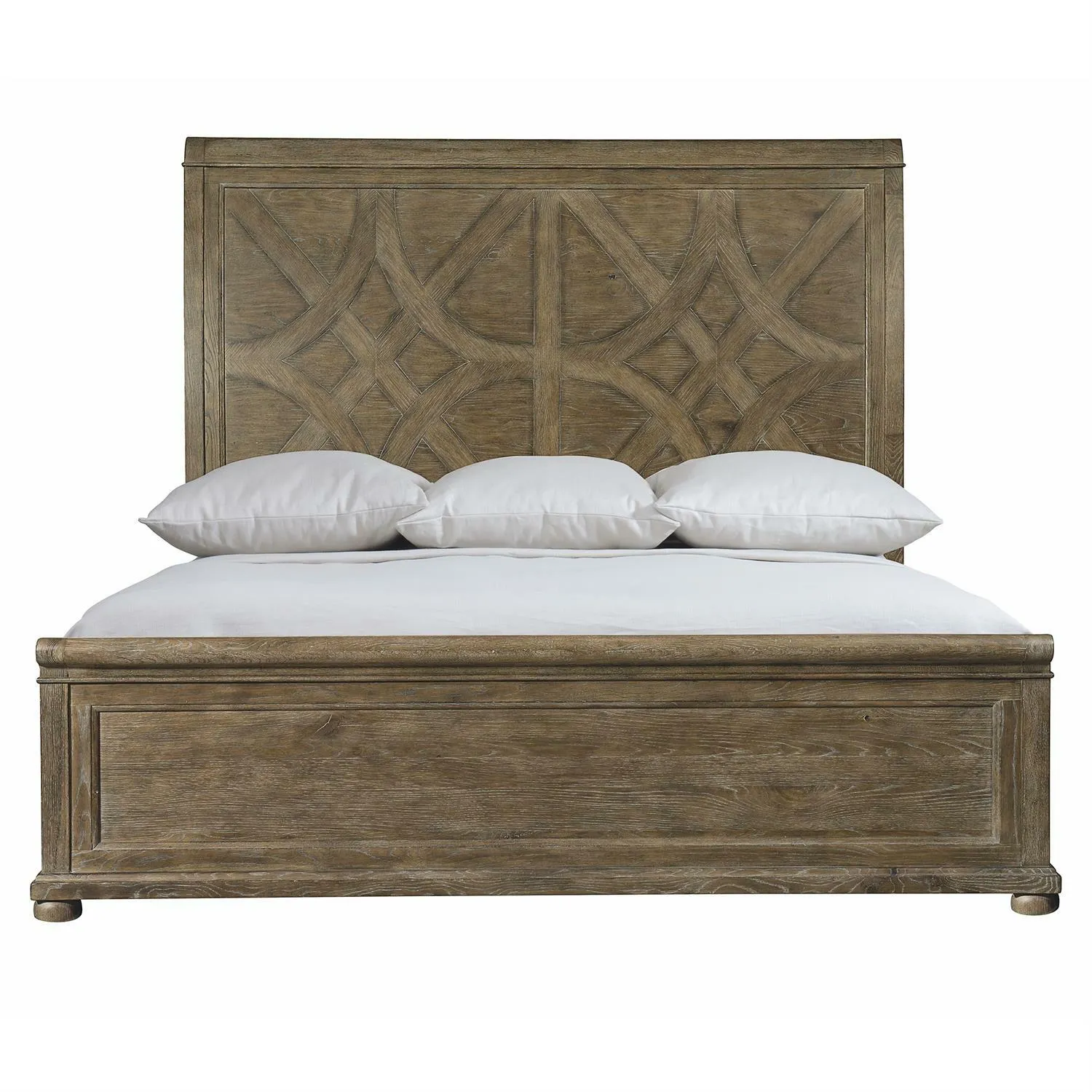 The Rustic Patina collection gives a modern facelift to traditional designs with roots in English and French country furniture, incorporating rustic touches to create a casual look. The Rustic Patina Panel bed is constructed from natural wood with soft tones. The mandala-inspired pattern on the headboard and quaint bun feet offer pleasing decorative accents. So inviting and comfortable, you will want to linger in bed after the alarm goes off. Available in two finishes: Sand and Peppercorn.
