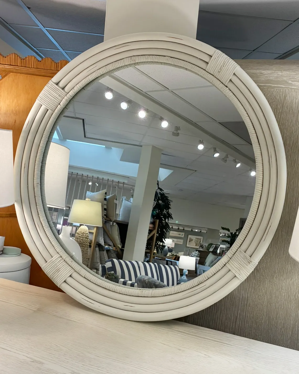 The GETAWAY ROUND MIRROR by Universal may be available at Oskar Huber Furniture & Design in the Southampton and Ship Bottom areas. Please contact us to check availability.