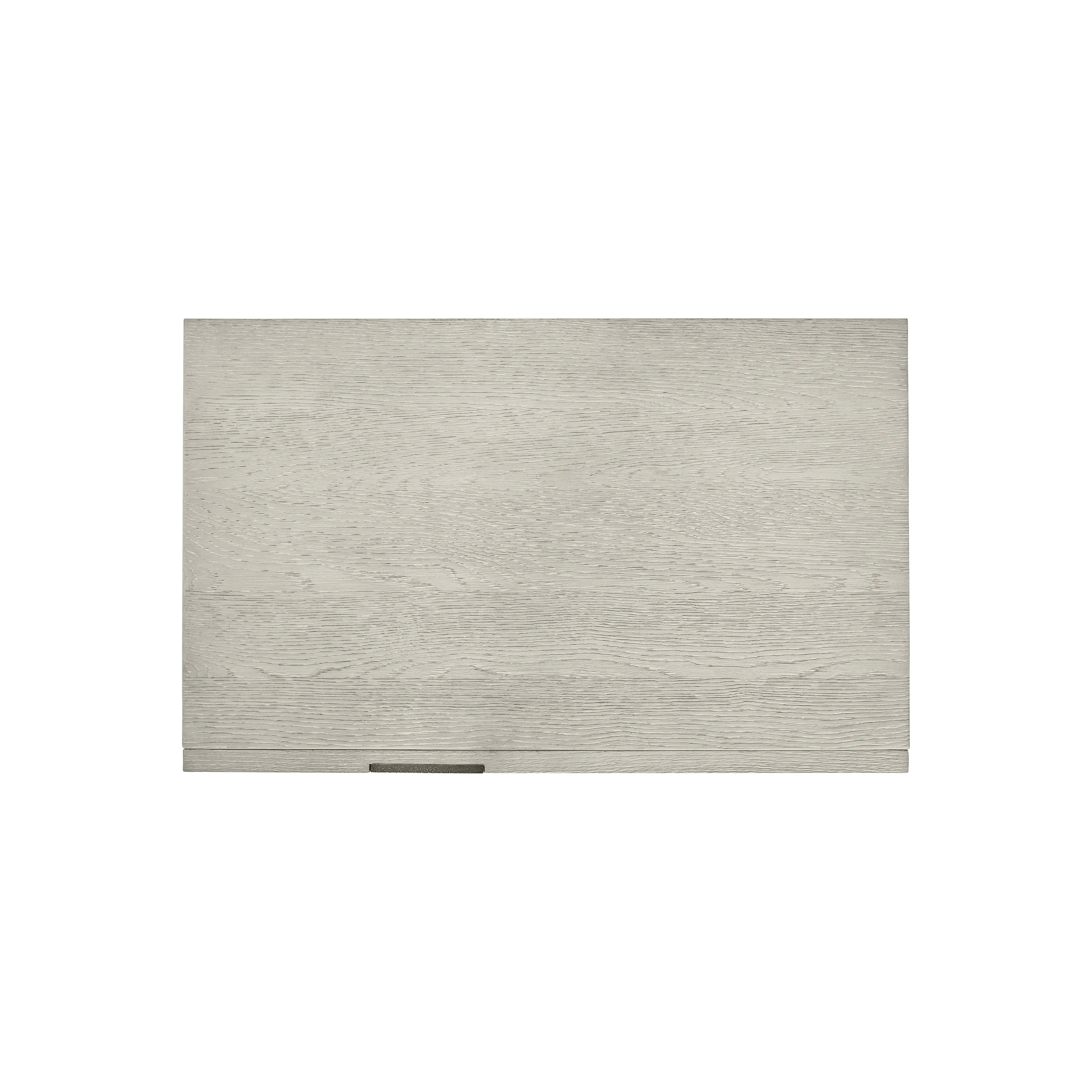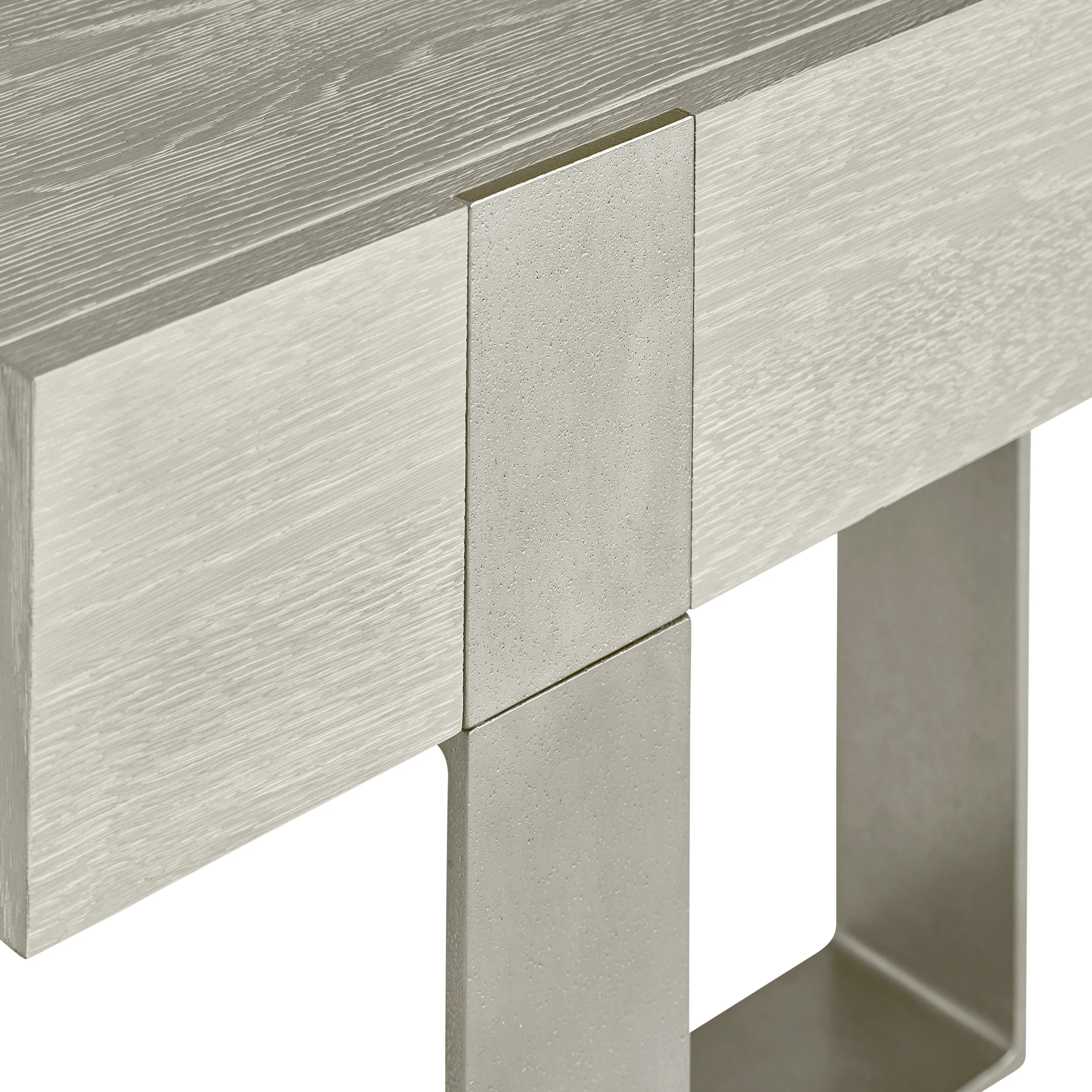 • Wirebrushed oak drawer box in Larza finish and open sandblasted aluminum base in Satin Nickel finish