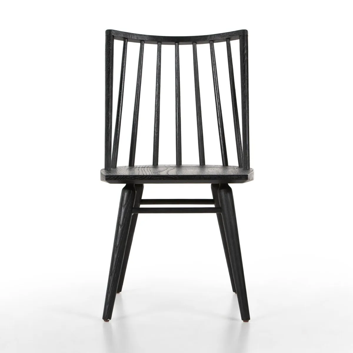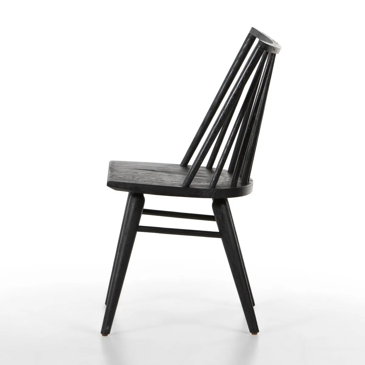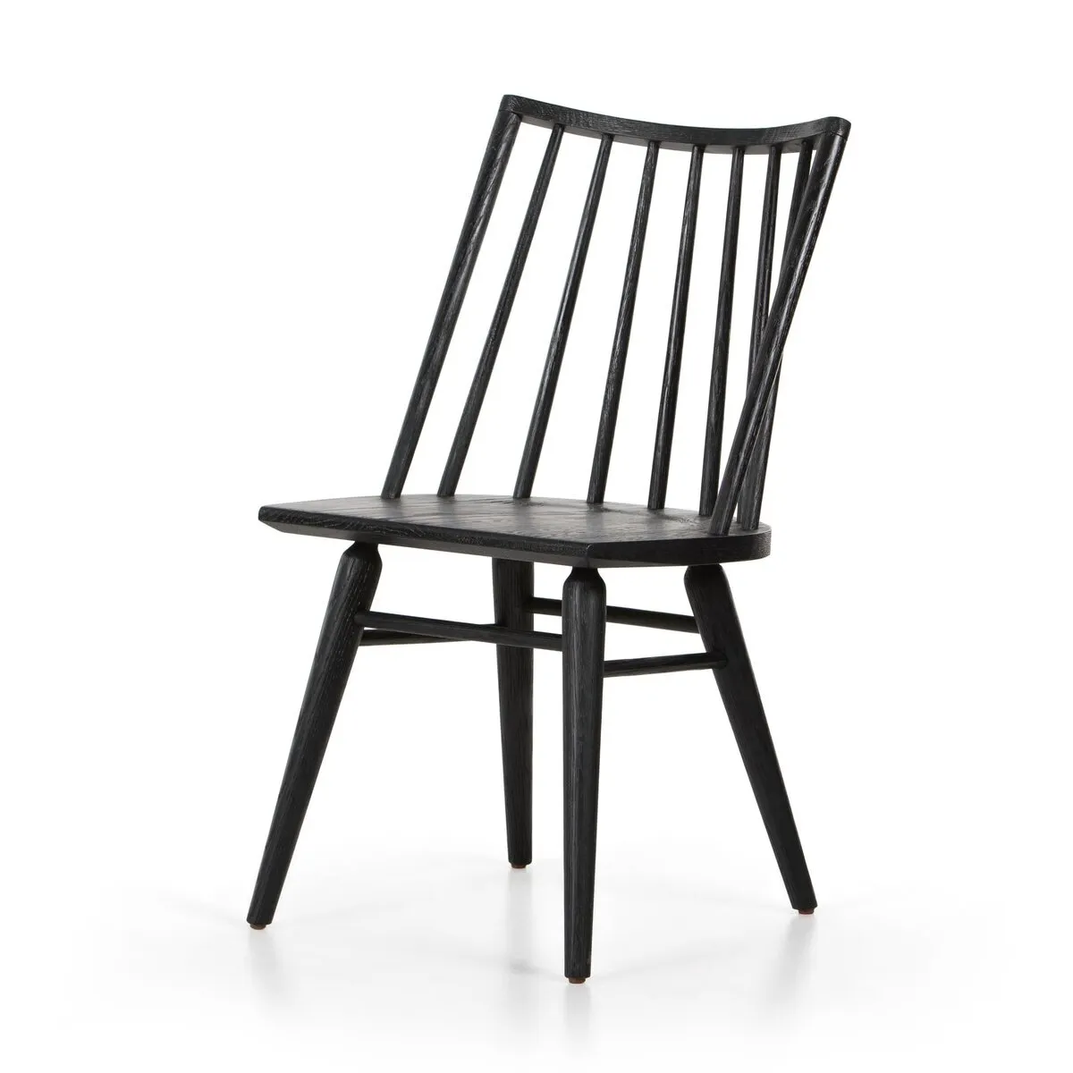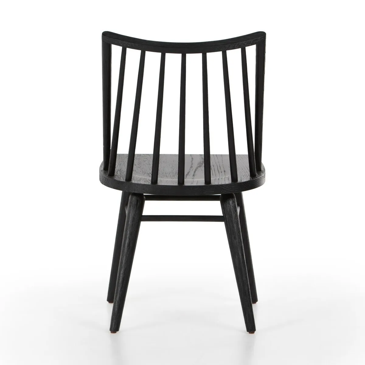 Try a cleaner, more modern take on the traditional Windsor. This tall beauty is wire-brushed to bring out the cathedral grain in the oak, and stained deep black for lovely contrast with more industrial decor.