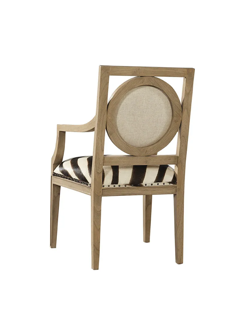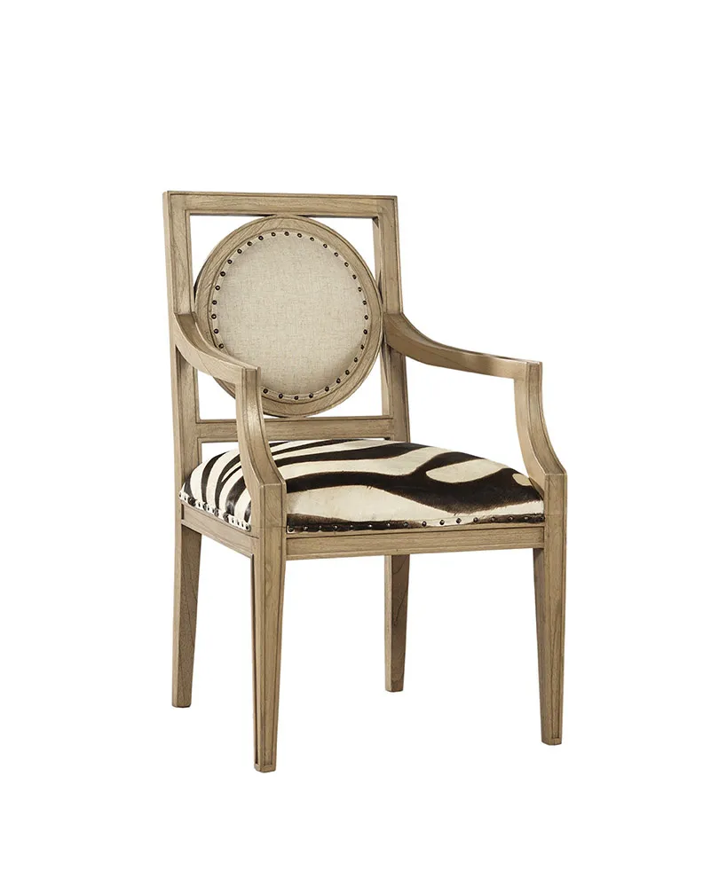 Materials Oak Frame With Linen Back And Fauz Zebra Stenciled Seat More info Design Will Vary Seat Height 18" Arm Height 20"