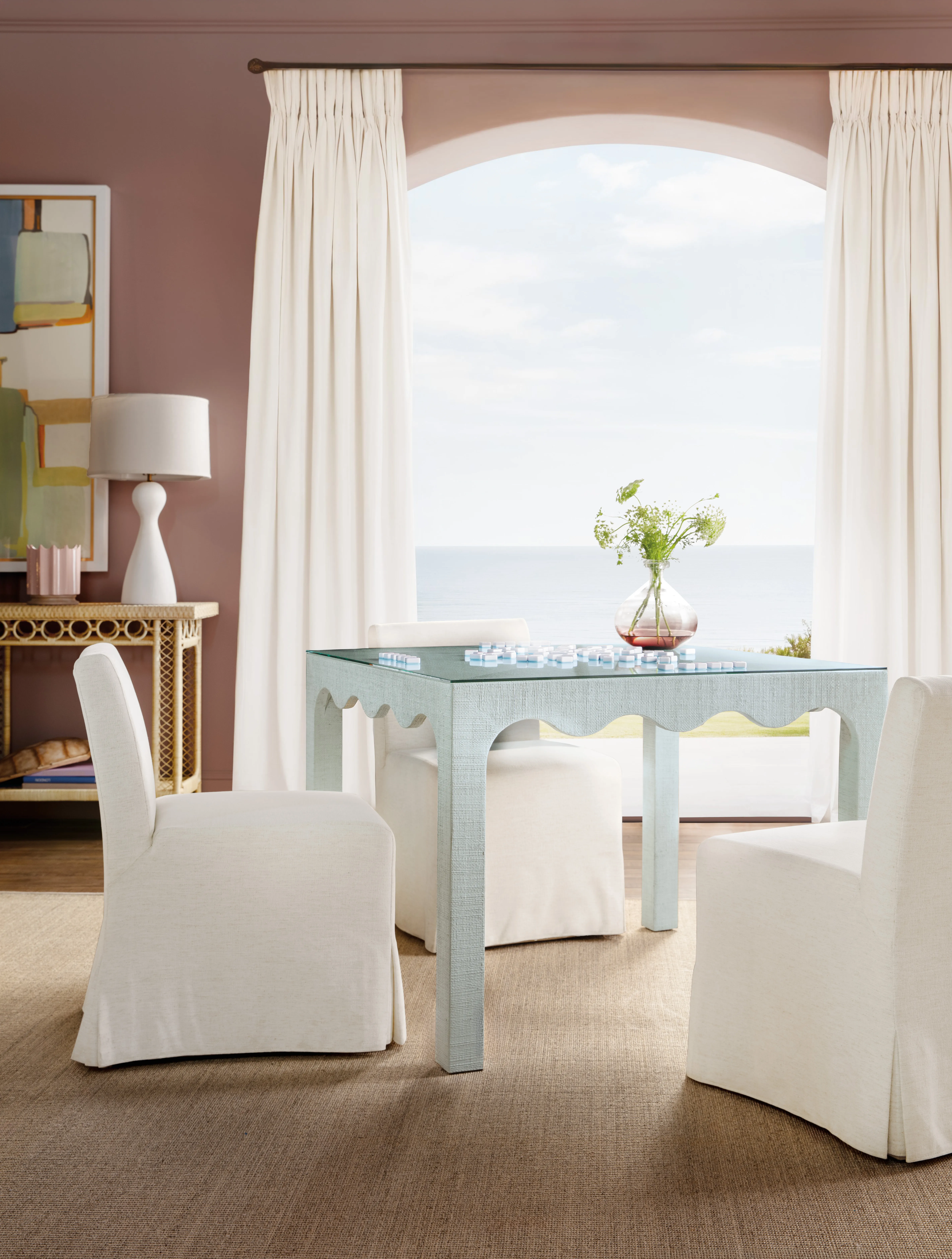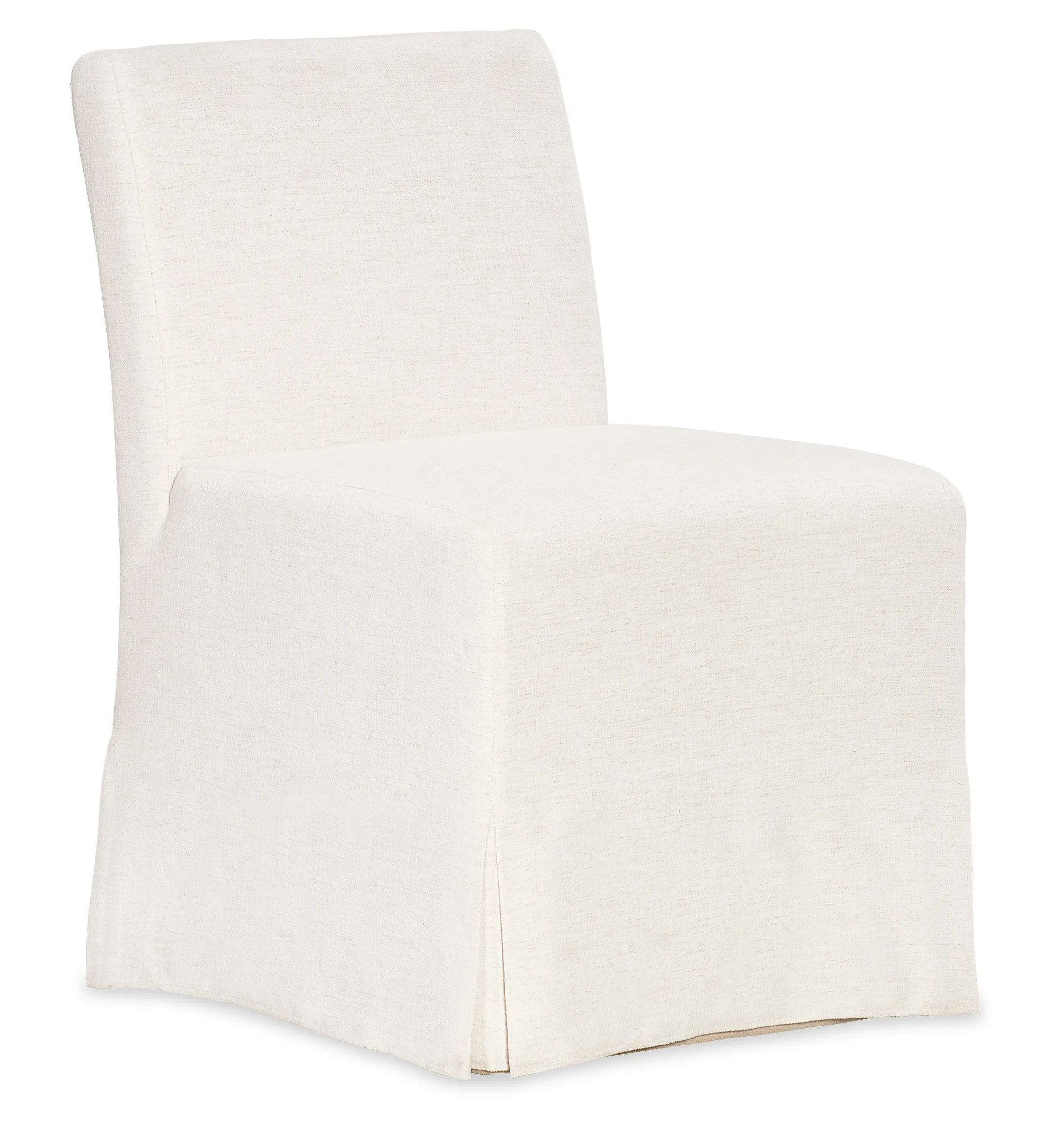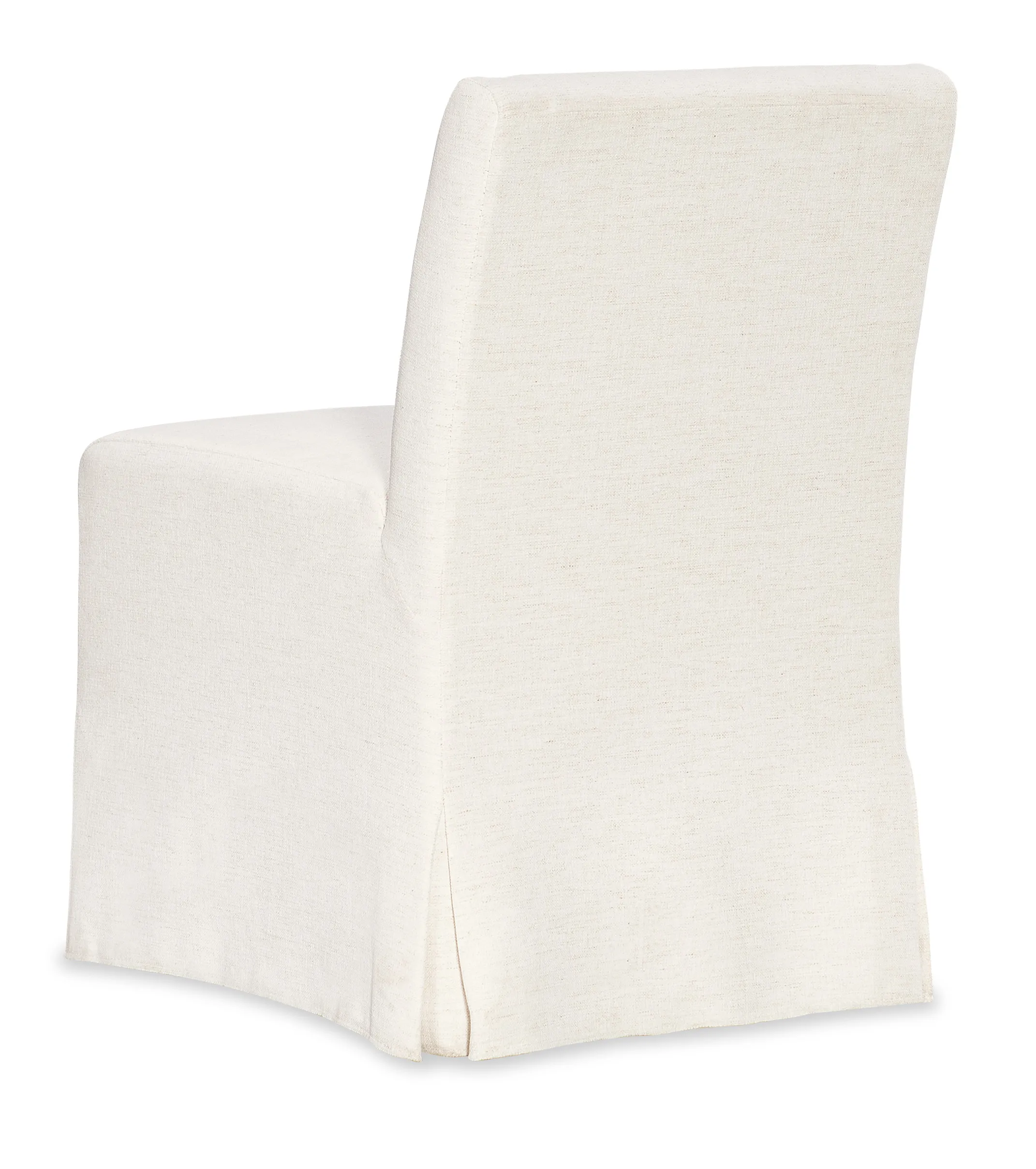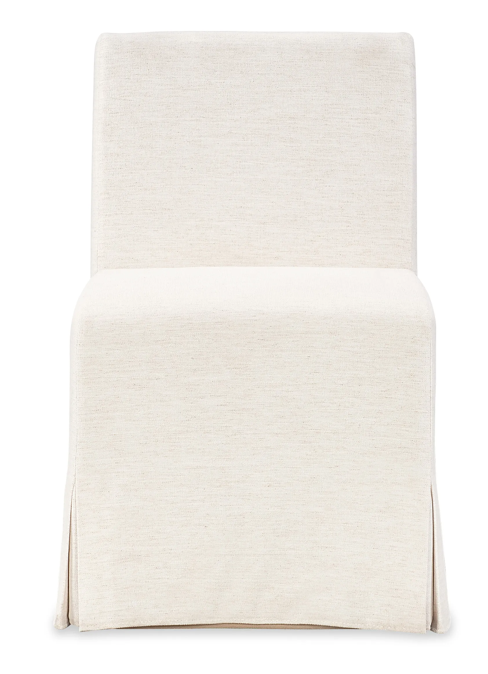 Relaxed yet refined, the Ren Dining Chair offers effortless comfort with a tailored, versatile design. Fully upholstered in Nomad Snow performance fabric, its soft texture and clean lines create an inviting presence suited to a variety of dining spaces. The skirted base adds a casual elegance, while the fully covered silhouette delivers a cohesive, polished look. Designed for everyday living, the Ren Dining Chair combines durability with understated style—making it an ideal choice for modern farmhouse, coastal, or transitional interiors.