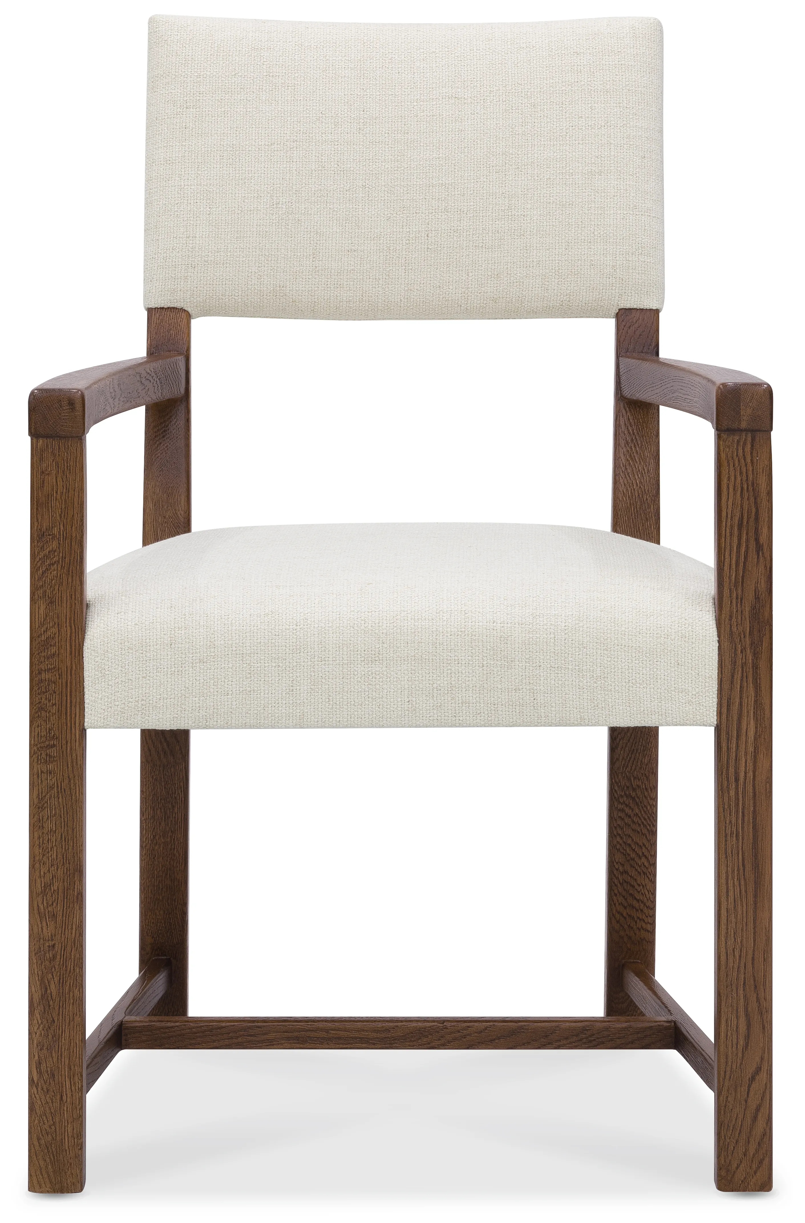 The Driftwood Upholstered Arm Chair brings relaxed elegance and artisanal character to the dining room. Its open back and open arm design create a light, airy silhouette, while wood arms add warmth and structure to the overall form. An upholstered seat and back in 100% polyester provide comfortable support, making it ideal for both everyday dining and extended gatherings. Finished in Worn Saddle—a deep, burnished tone inspired by the supple leather of well-loved armchairs and hand-tooled heirlooms—the chair features a dry, distressed finish that highlights natural wood knots and worm holes for authentic texture. Striking a balance between heritage craftsmanship and contemporary versatility, the Driftwood collection reveals a rich depth and timeworn patina, celebrating the beauty of naturally aged materials.