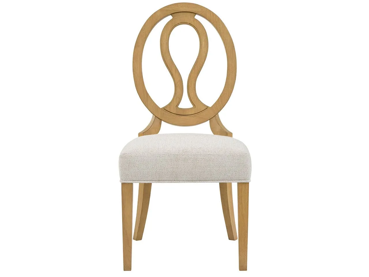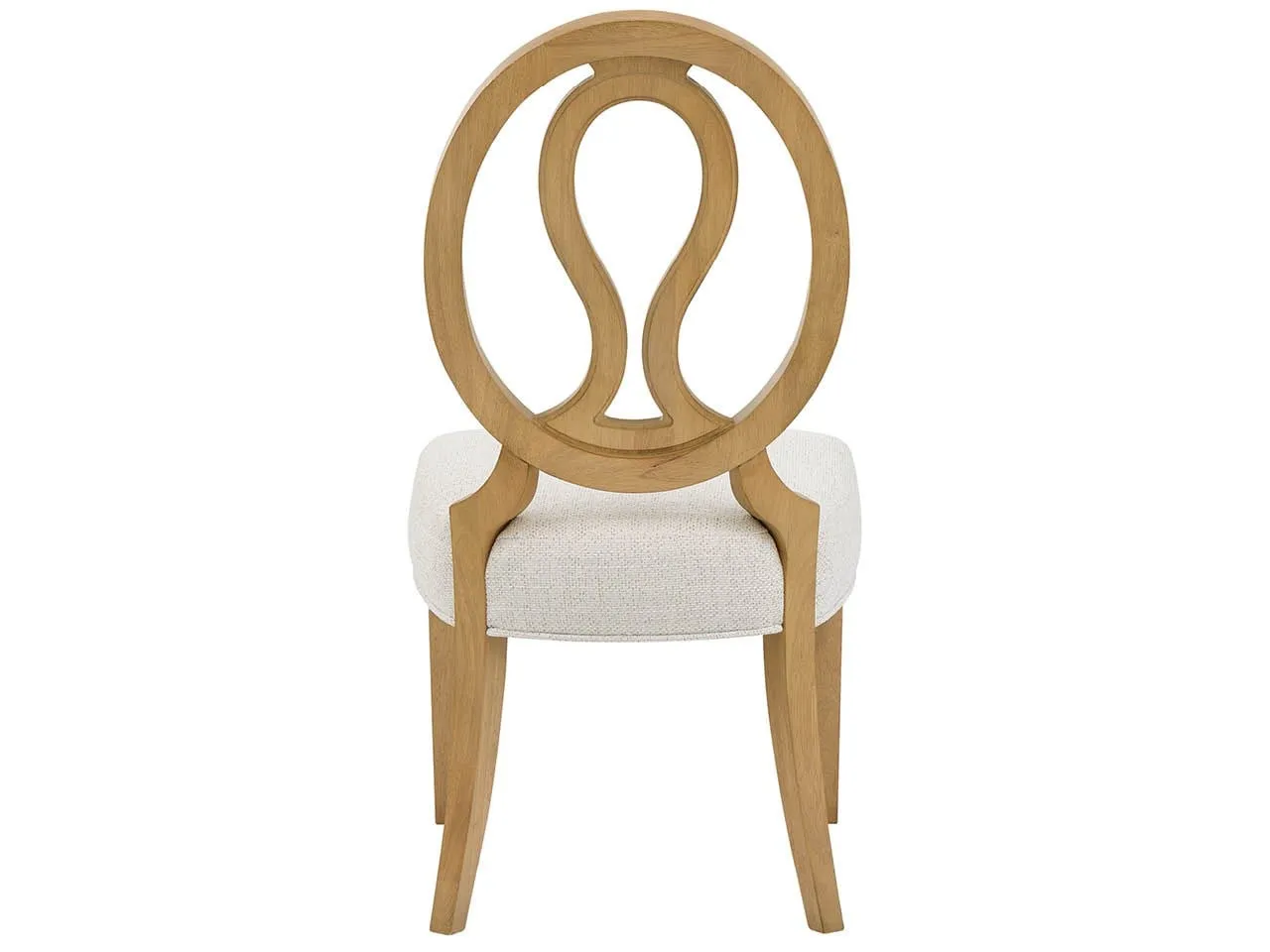 The Brindle Oval Side Chair introduces a graceful, softer line to the dining collection with its subtly sweeping oval back finished in the rich Brindle tone. Upholstered in the textural Bilma Natural fabric, this chair offers a refined, neoclassical comfort that elevates the experience.