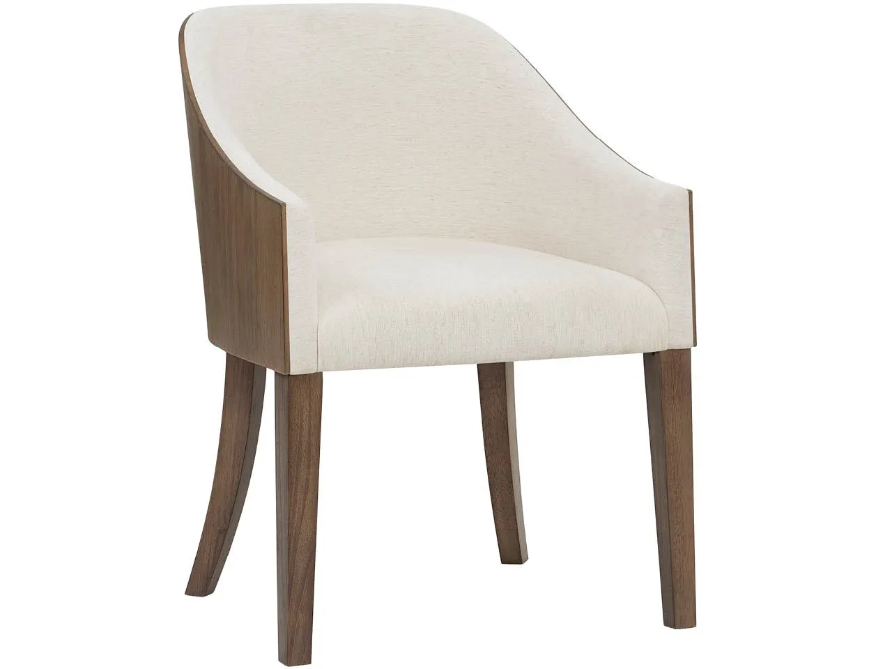 The Haze Dining Chair is a shell-back style chair featuring a Haze Walnut frame and an upholstered seat in soft Levi Oyster fabric. The thoughtful design of the Haze Dining Chair offers a comfortable and elegant seating solution.