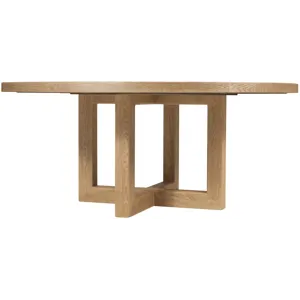 Inspired by decades of design movements with an unmistakably modern aesthetic that transcends time, the Modern Mood Round Dining Table is a statement piece with a softly sophisticated profile. Featuring metal banding accents on the base in a warm pewter finish, it is crafted of Quartered Oak Veneers in a Diamond Finish with crystal-like alabaster hues. With one 18-inch leaf, the table extends up to 72 inches round.