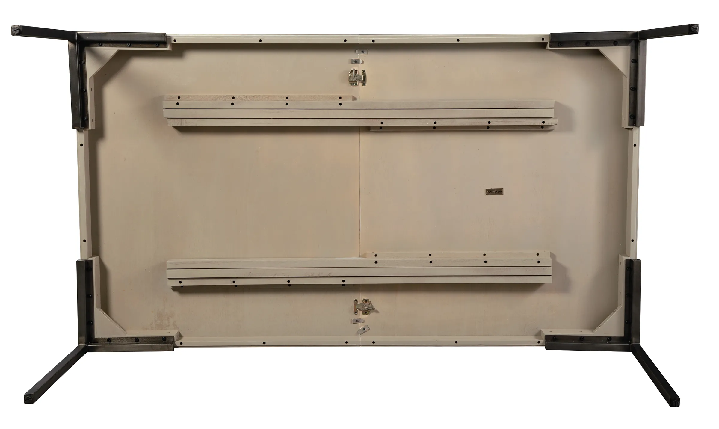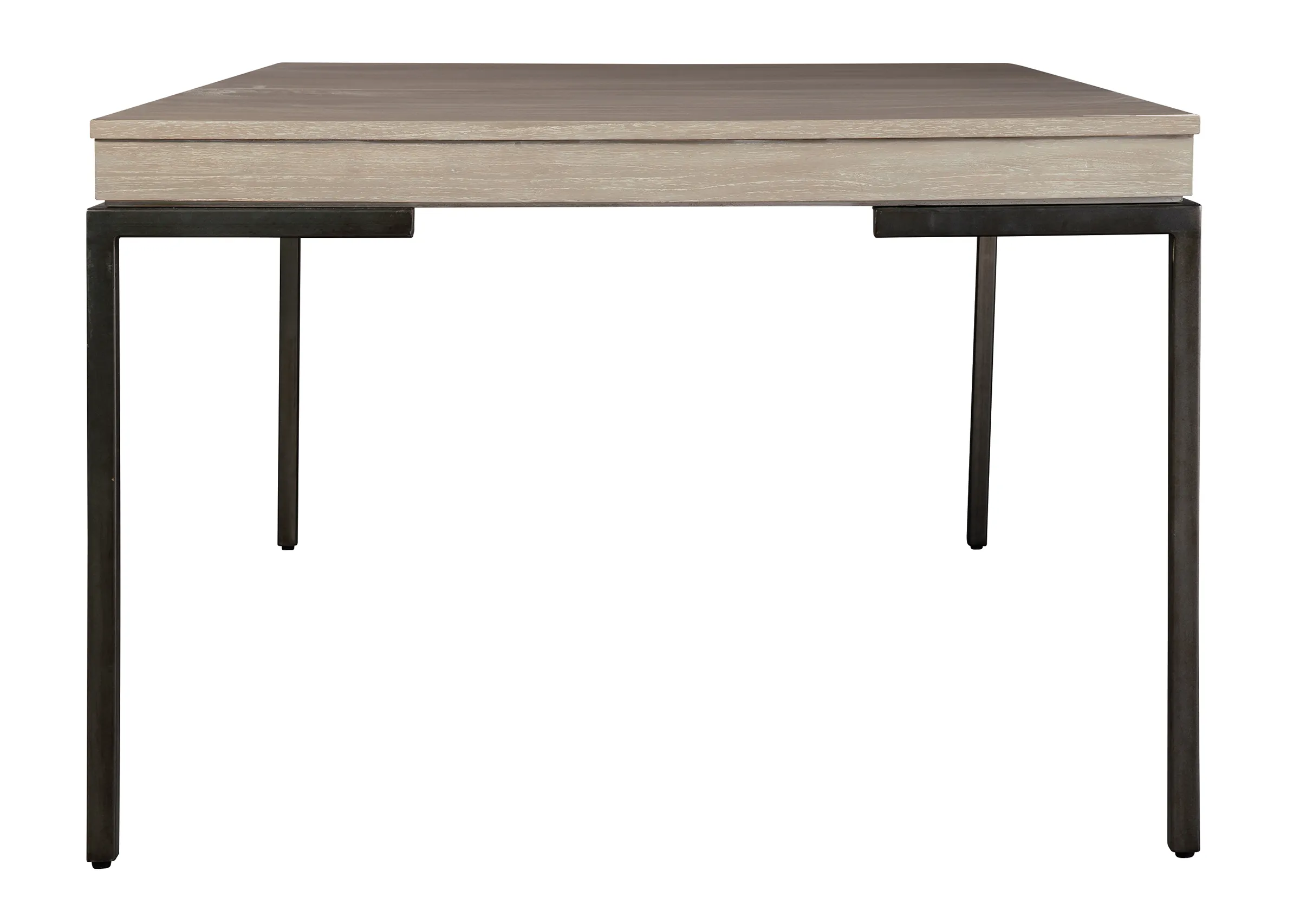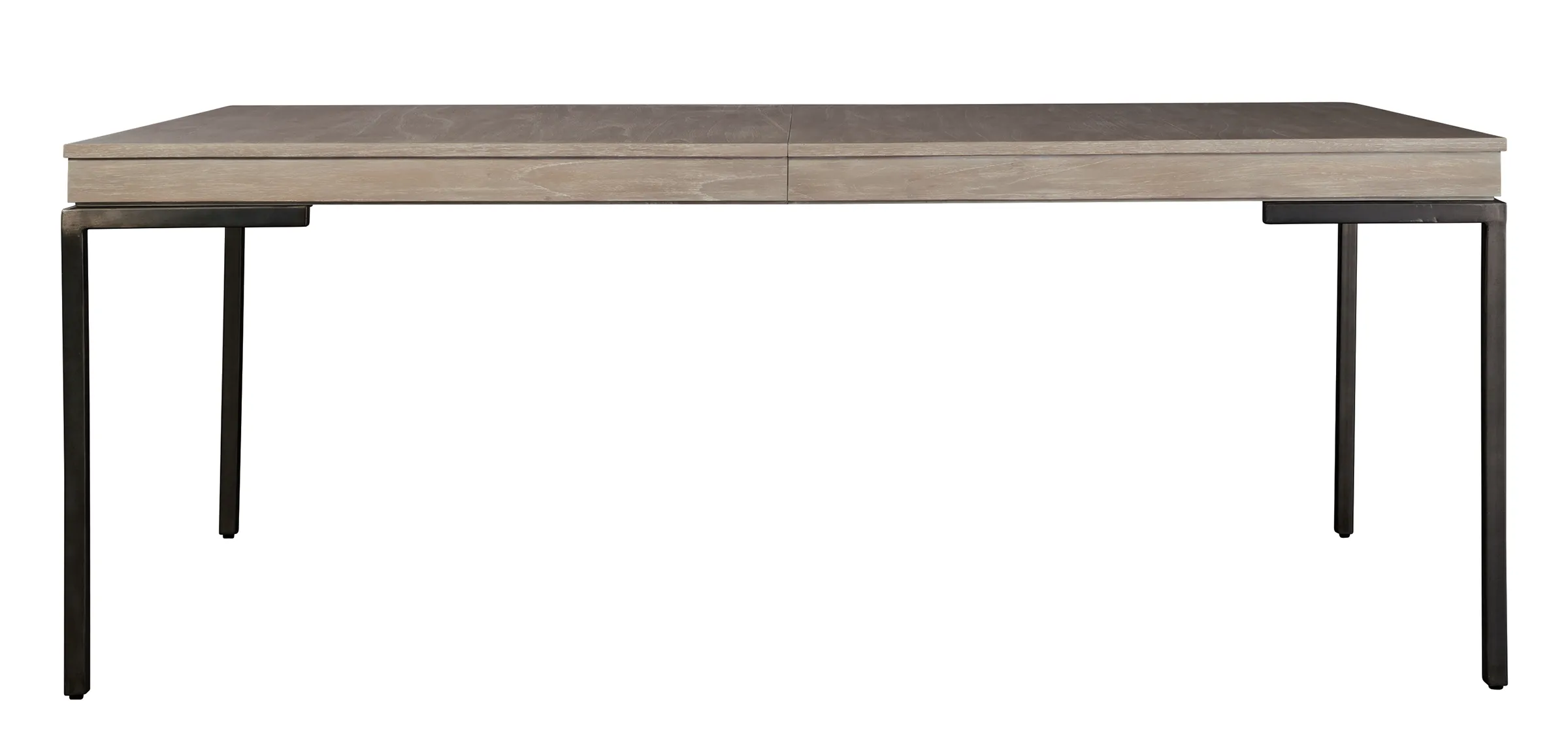 • One 20" leaf extends table to 98. 25" Mindi veneer and solids. 3/4" slab top with 2-1/2” apron supported with 1-1/4" square metal legs in aged iron finish. Some assembly required. Scottsdale finish.