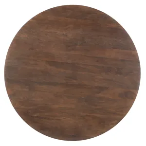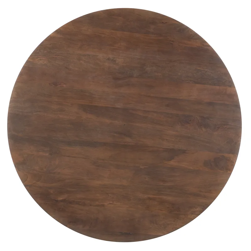 Classic in form, this round pedestal table in a warm medium mango wood finish anchors your dining room with understated elegance and organic texture.