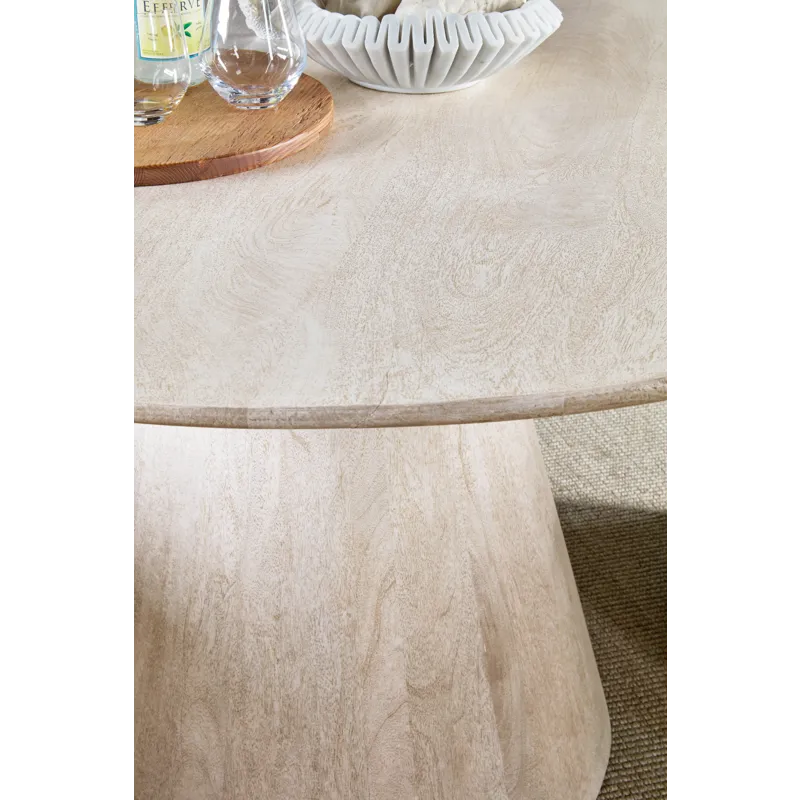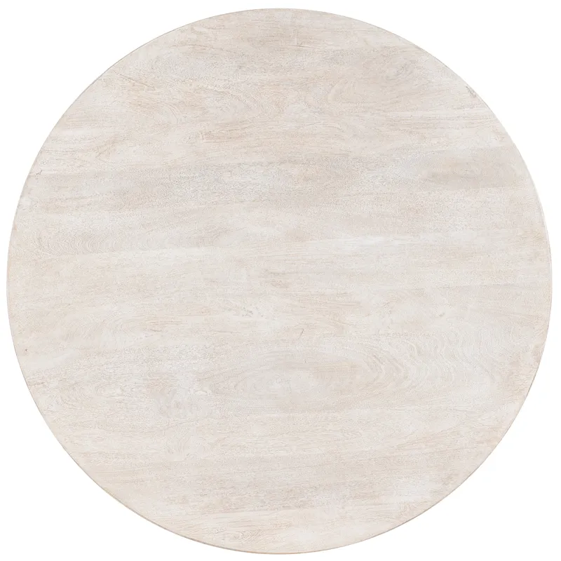 With a timeless pedestal base and crisp white finish over mango wood, the Madison Round Dining Table adds sculptural charm to any dining space. Ideal for casual, modern, or transitional interiors.