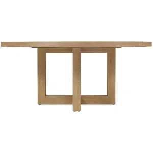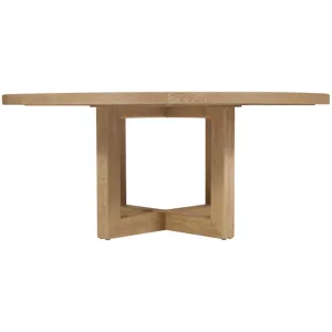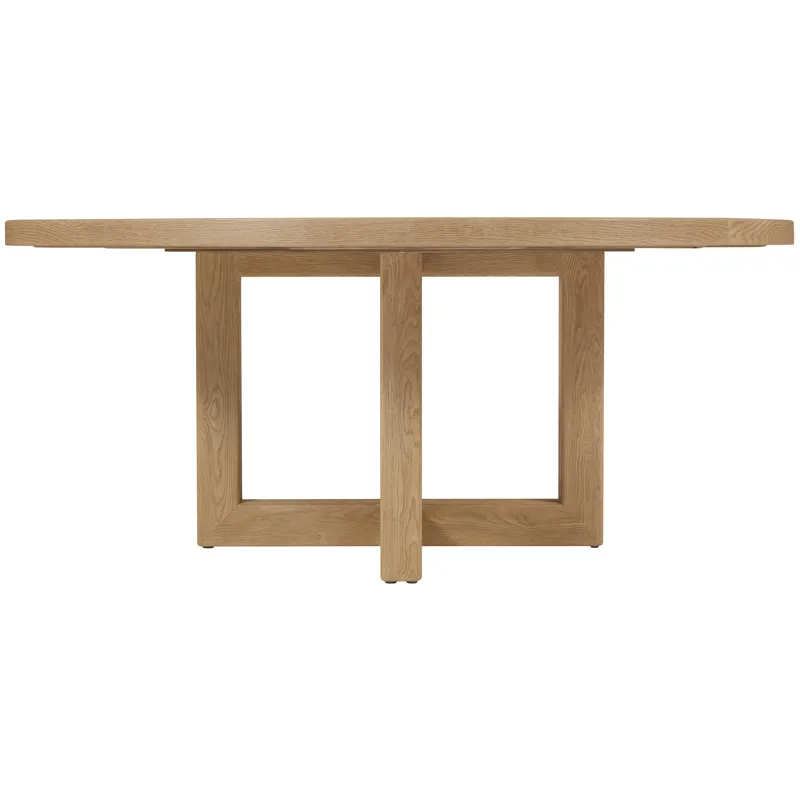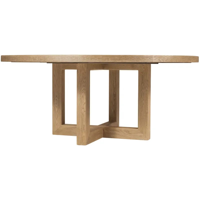 The Driftwood 72-Inch Round Dining Table in Buckboard finish embodies rustic casual style with its sun-faded oak tones and open pedestal base. Its handcrafted character and sturdy interlocking design make it ideal for creating warm, inviting dining spaces. Perfect for design-conscious consumers, this table is a versatile choice for both daily use and casual entertaining.