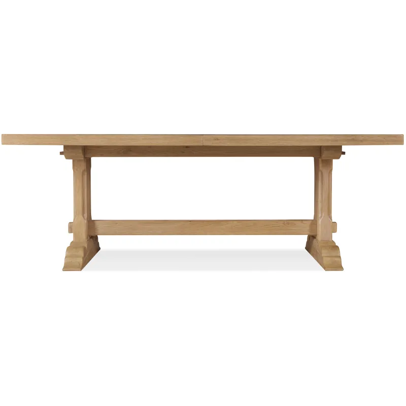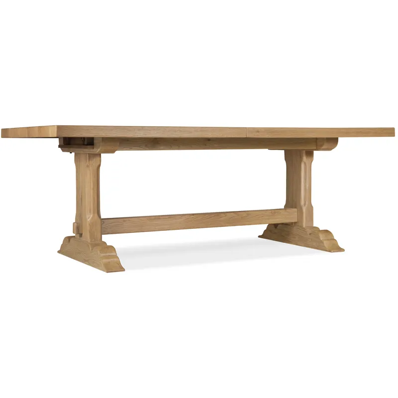 The Driftwood Rectangle Dining Table in Buckboard finish brings a sense of relaxed, rustic elegance to your dining room. Its warm, sun-faded oak tones and double pedestal base create a casual yet refined look perfect for open, inviting spaces. Designed for flexibility, the table extends to 126 inches with two 20-inch leaves, making it ideal for hosting gatherings with ease. This table appeals to consumers who love understated farmhouse charm paired with timeless craftsmanship.
